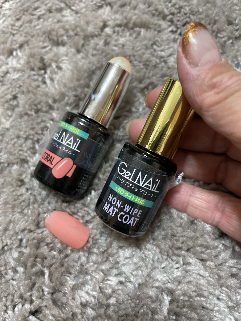 セリアのマットコート使ってみた!ネイル素人だから良いか悪いかよくわからないけど、100円なのでとりあえずOK😂セリアの通常のノンワイプトップコートと比べると少し固まりにくい気がするけど気のせいかな..?#セルフネイル#ジェルネイル#マットネイ...
