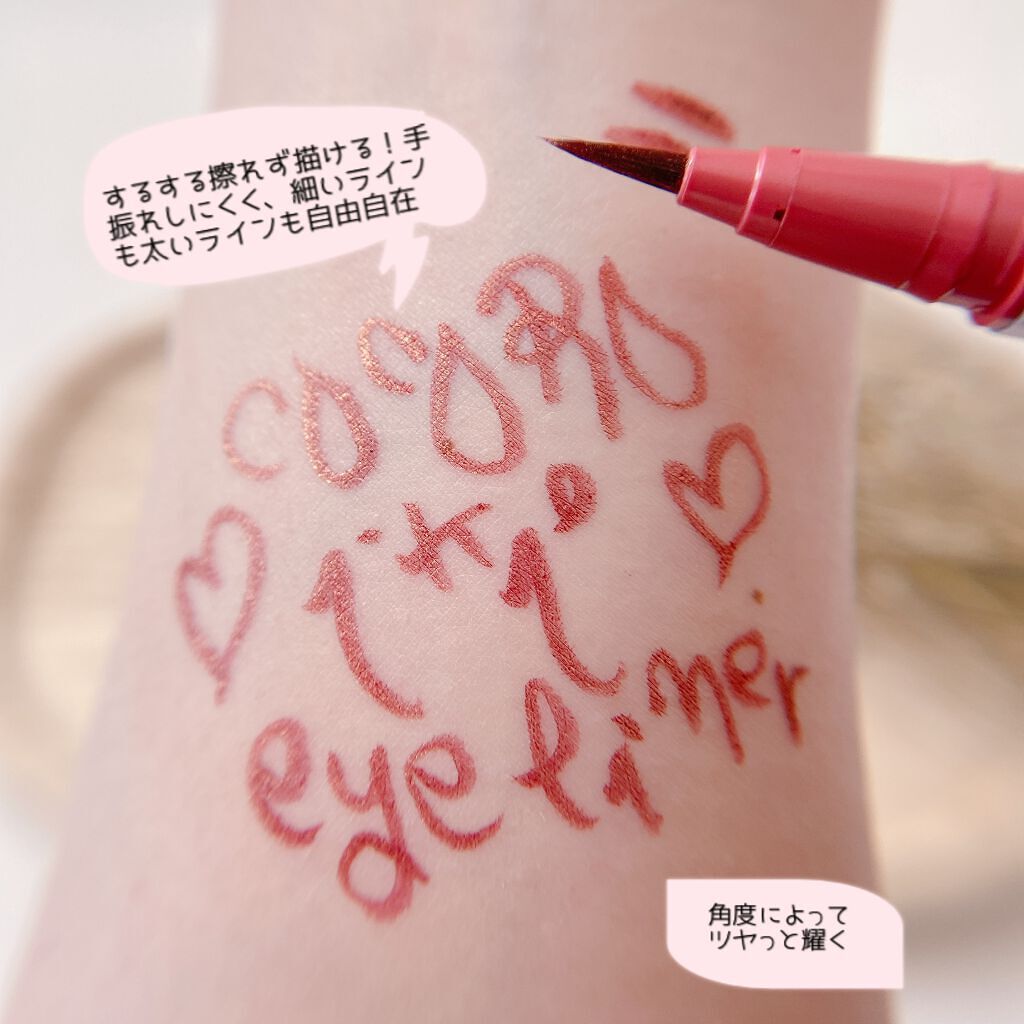 色艶感じるパールの質感、上品な輝き、ニュアンスのある色合い、なめらかな使用感、濡れツヤ発色✨ ラメがとても綺麗で感動しました✨ 想像以上に煌めきのある目元に🥹 耐水性ですが、お湯と洗顔で簡単にオフできるのもありがたいです🥰