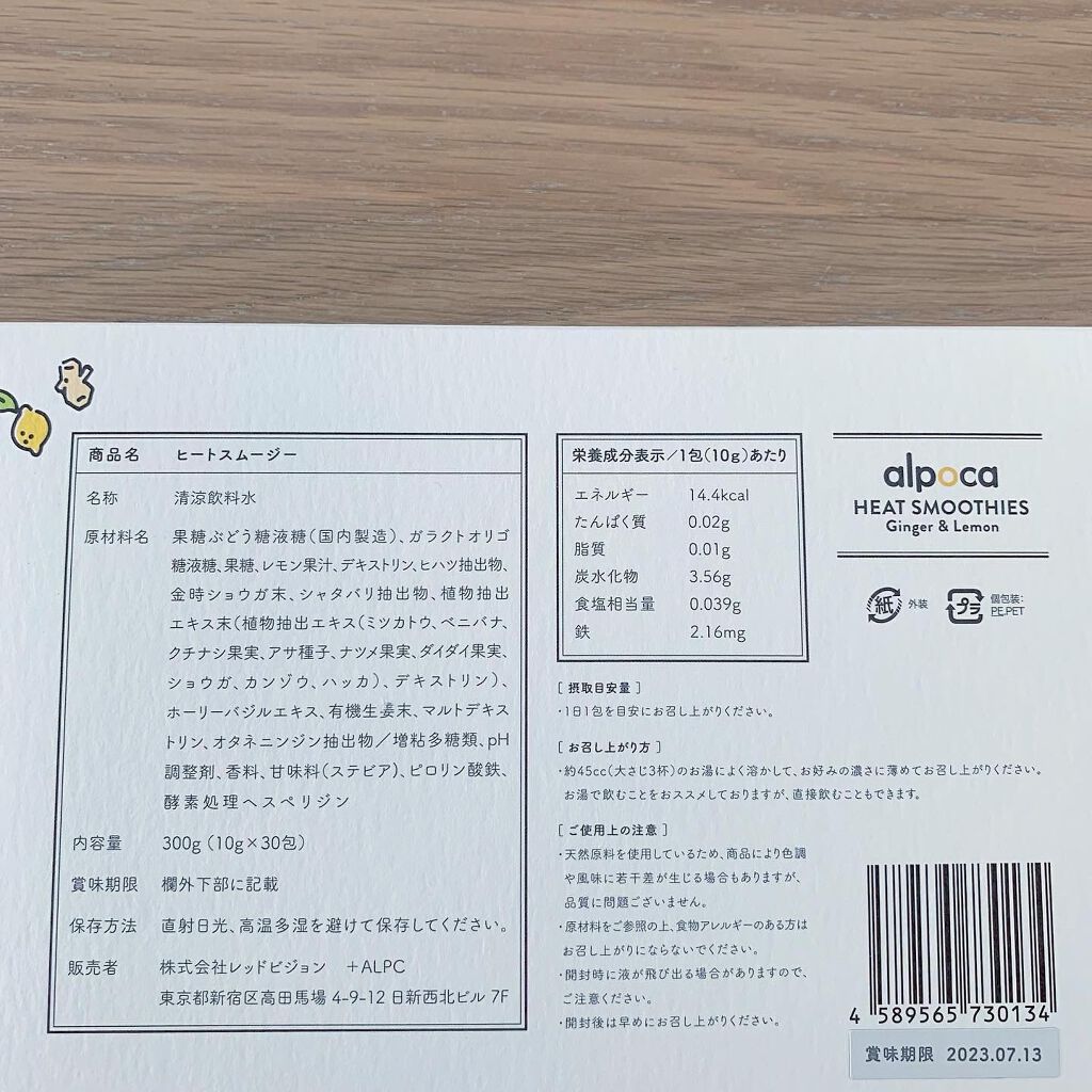 = = = Point = = = 温活サポート成分:金時生姜 / ヒハツ / 鉄分 / 高麗人参 / ホーリーバジルなど 9種の植物抽出エキス 生姜を効かせたちょっぴりスパイシーなレモネード風味 1箱30包入り 6大添加物不使用 いつでもどこでも飲めるスティックタイプ 飲み切りなので、1回の量がわかりやすくて良いですよね。 そのまま飲んでも良いし、水や飲み物で割ったり、ソースとして料理に加えてもOK。 私はそのまま飲んでいますが、生姜とレモンを感じられる味がとても好きです!