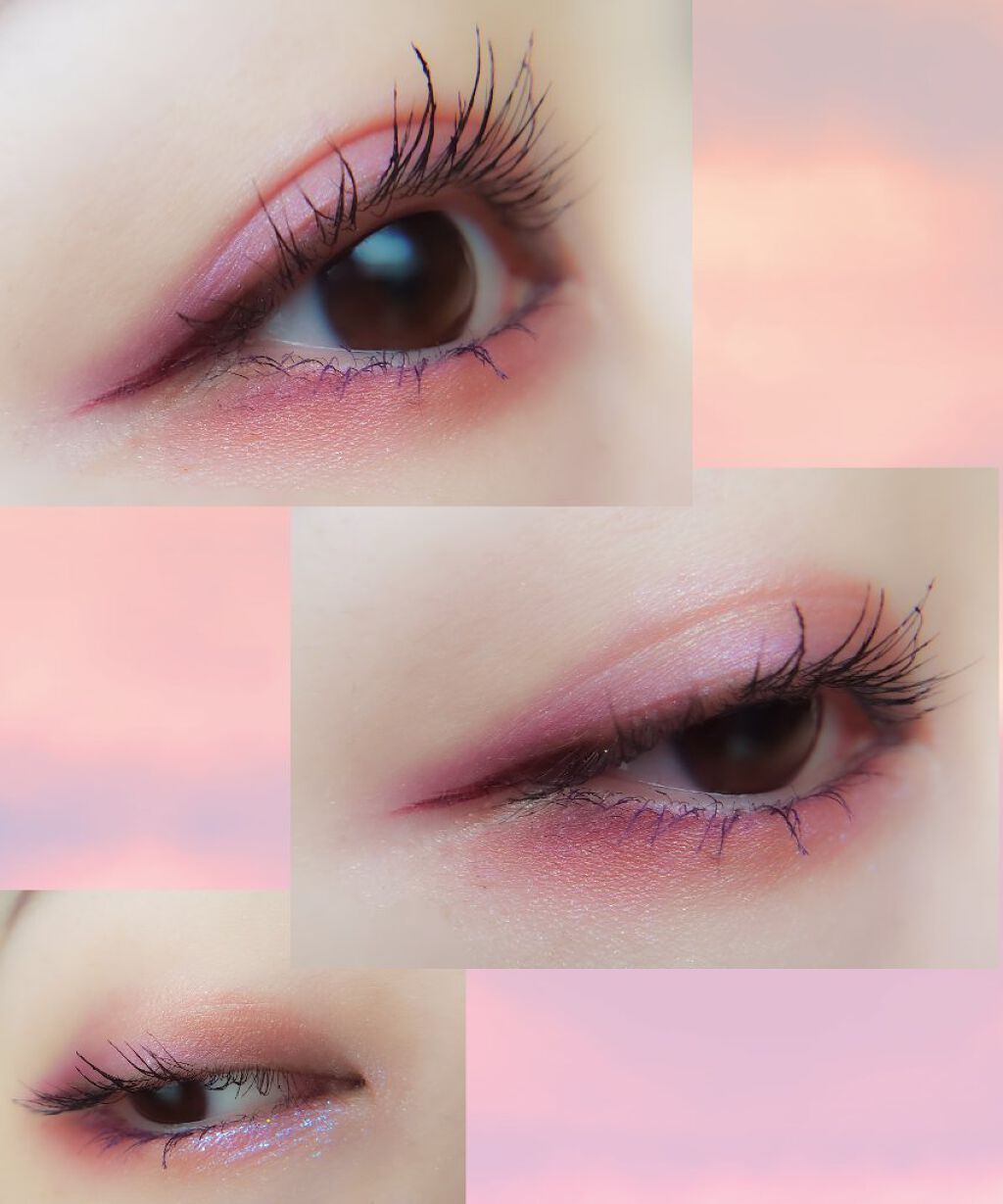 緋影は、右上アイホール左下二重幅+下まぶた 明雫は、下まぶた 宵雫は、目頭と黒目上 これめちゃくちゃ可愛いです!顔に秋が来てたまらんです!! 明雫と宵雫のたっぷりラメをとてもよく生かせてると思う(自画自賛メイク)限定なのほんともったいない体操。
