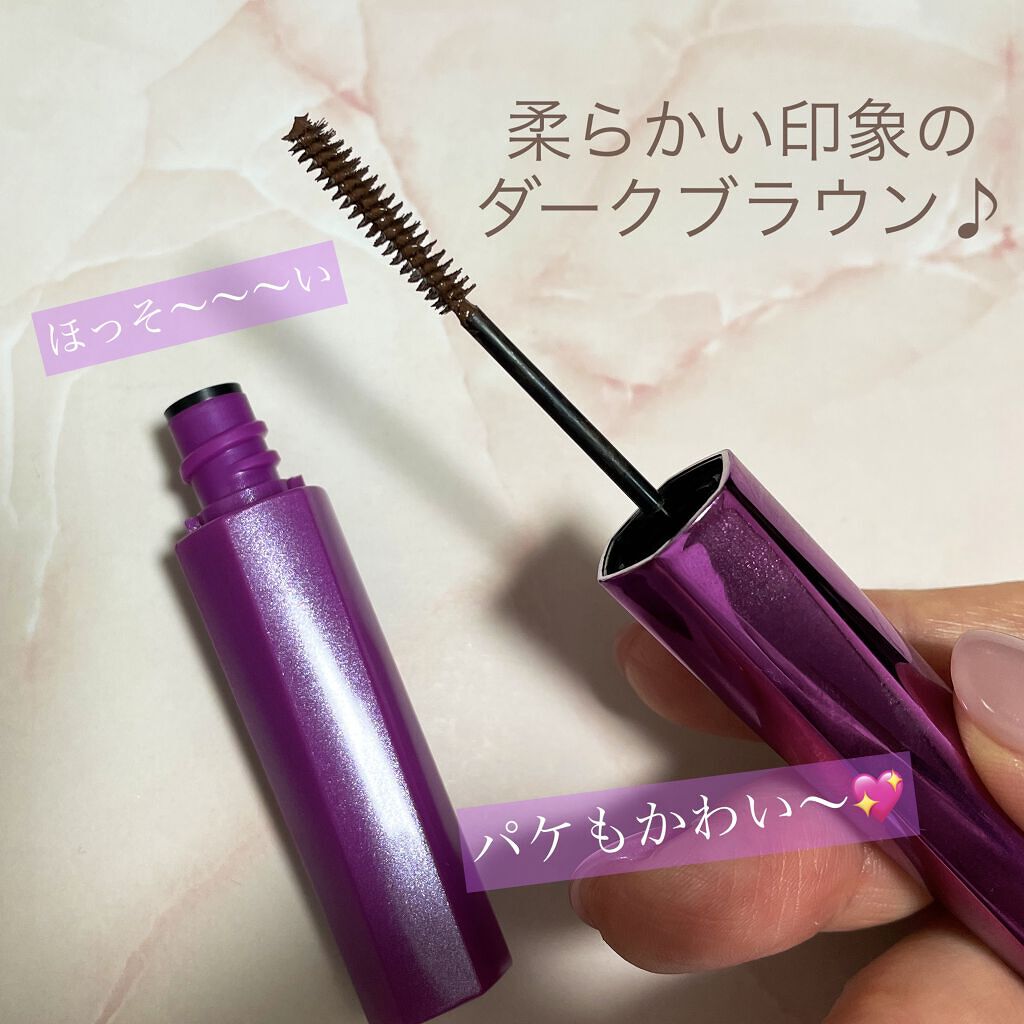 色がかわいい 落としやすい もちが良い ブラシがやや大きく、根本や細かいところに塗りづらい オレンジブラウンとの商品名ですが、そこまでオレンジ!って感じでもなく、でもブラウンマスカラよりは明るくてかわいい。カラーマスカラ初心者でも使いやすい秋色ブラウンでした💖 フィルムタイプでお湯と洗顔料でオフできます(落とし残りがない✨)