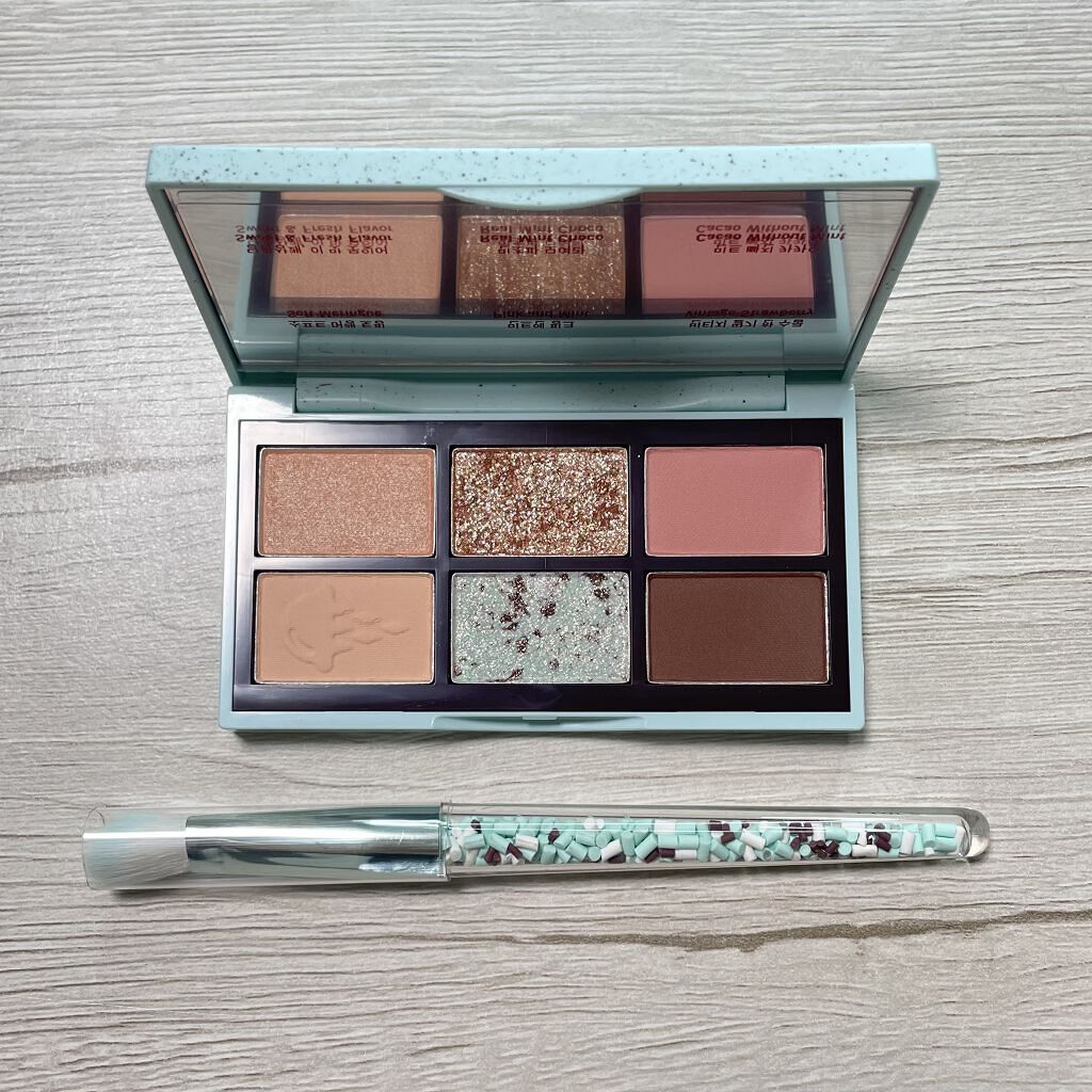- チャーミングに仕上げるスペシャルキット チョコミントのように甘く爽やかな色合いのアイシャドウパレットとキュートなブラシがキットに。思わずクセになっちゃう絶妙なハーモニーでまぶたをチャーミングに色づけて。可愛らしさを印象づけるピンクコーラルからカカオのようにほろ苦いブラウンまで、捨て色なしの6色であなたもチョコミントの虜に…!