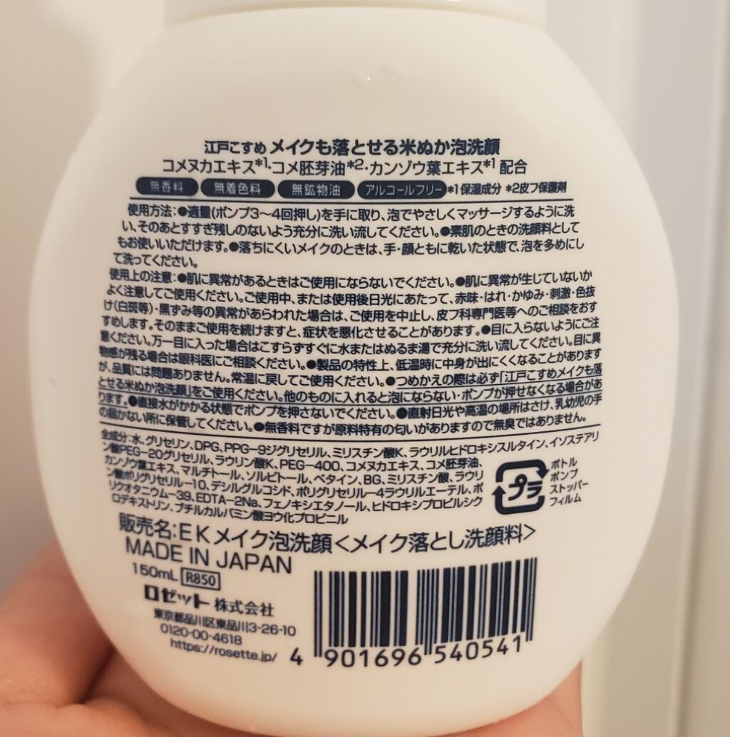 商品詳細情報ロゼット 江戸こすめ メイクも落とせる米ぬか泡洗顔