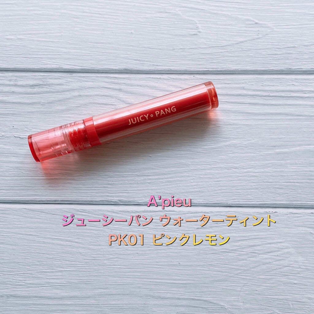 【ピンクレモン色の涼しげぴんく🍋】A’pieuアピュージューシーパンウォーターティントPK01ピンクレモン1,100円(税込)ジューシーな果実みたいな発色がかわいいアピューのティント♡今回使った「PK01ピンクレモン」は涼しげな青みをちょっと...