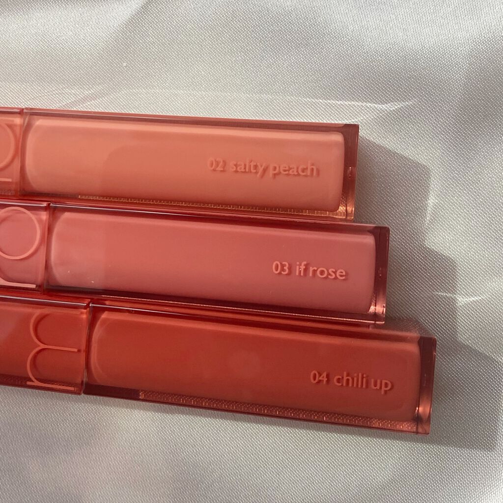 思ったより可愛いから、気になる方ぜひご参考に!💭💕 ゴールドピンクカラーの四角いパケ プチプラでは思わない高級感を感じる✨ リップ自体の硬さが硬めで、唇の温度で溶けたりはしない、蓋が汚くならないところがすごくお気に入り🩷 個人的には03と05が大好き。イエベさんめっちゃおすすめします!