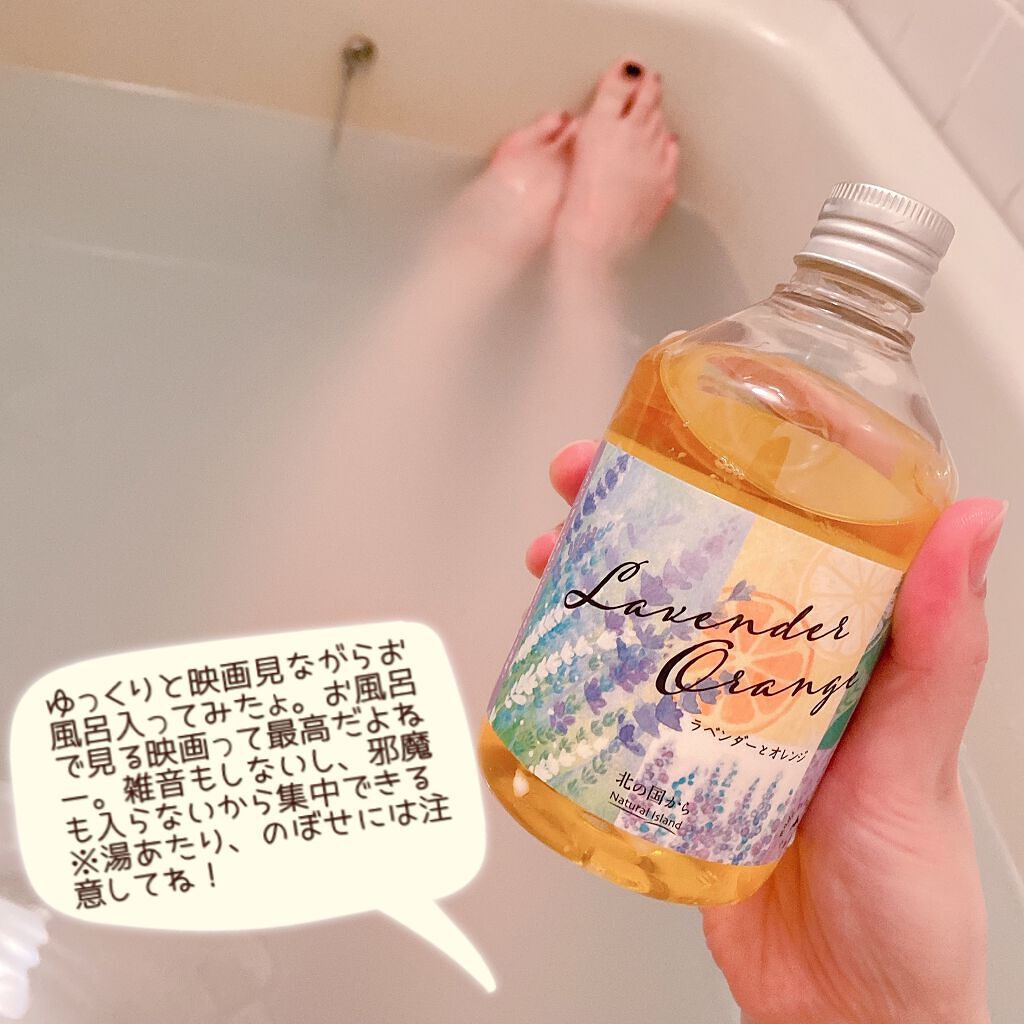 お風呂のお湯に1回分(キャップ3~4杯)を入れ、よくかき混ぜてから入浴します。ラベンダーとオレンジの香りがバスルームに広がり、とてもリラックス出来ます❤️このお湯でホットタオルを作って顔にあてると最高です!子供たちも『いい匂い〜』と言いながら...