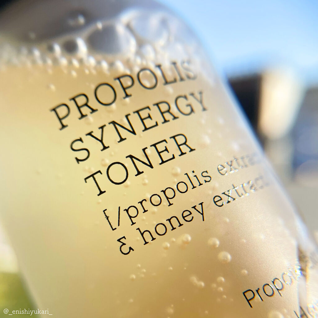 - 1)肌を引き締めながらなめらかな肌に整える、しっとりしてべたつかないトナー。 2)主な成分: プロポリスエキス72.6%、蜂蜜エキス10%。肌にハリとうるおいを与え、乾燥を防ぎます。 すべてのスキンタイプにおすすめでございます。Full Fit Propolis Light Ample とともに使用することをお勧めします。