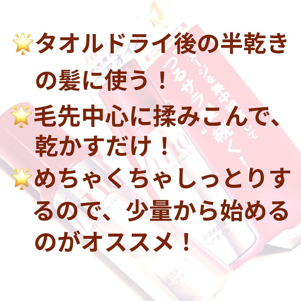 | 重ためなテクスチャーのヘアオイルだけど 仕上がりはまとまるのに軽やか。 | 詳細を見る | |||