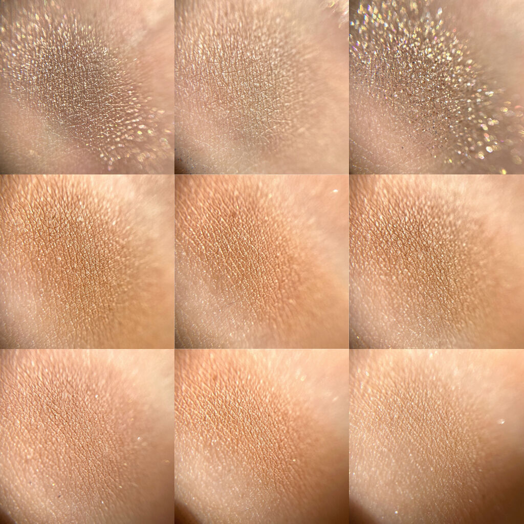 やっぱり可愛い…! 思ったよりコンパクトなサイズ感のアイシャドウパレットでした! このパレット全カラー使いやすい!! アイシャドウパレットのブラウンカラーは2色とも柔らかい発色なので使いやすい♡ そしてパールシマーのラメ感が可愛すぎる♡ 全体的に淡く柔らかい発色なのでとくにナチュラルメイクが好きな方におすすめしたい 𓂃 𓈒𓏸