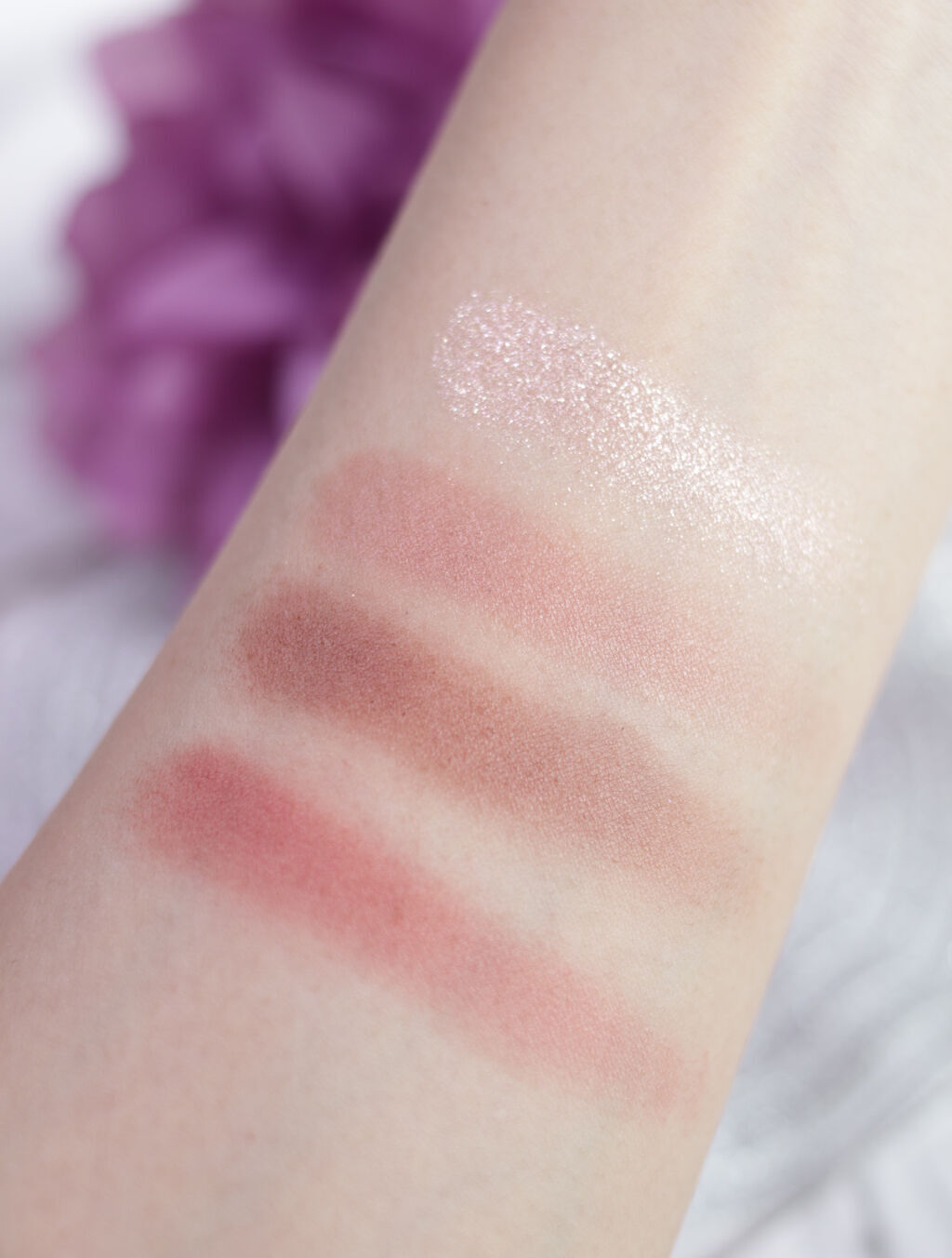 パール感や質感はプチプラとは思えないクオリティーふわふわな質感でしっとりとした濡れツヤ感が出せます。 ハイライト初心者さんはもちろん、使い分けすると色々楽しめるハイライトとなってます✨ 01 シャンパンベージュベーシックなホワイトハイライト。発色がいいのに浮きにくい! 02 パールグロウハイライト馴染みのいいピンクベージュカラーチークの上から重ね使いすると血色感もでて華やか肌質問わず馴染みやすい。 03 オーロラミントやや青みのある偏光パール入りのハイライトブルベさんが得意なカラー透明感と華やかさがこれ一つで叶う 04 シェルピンク高輝度パールがぎっしりライトなピンクで馴染みがいいです。03同様、華やかなハイライト好きさんには◎ 初心者さんが使いやすいのは01.02で、華やかさをプラスしたい方には03.04がおすすめです✨ 鎖骨がでる様子を着る時に、鎖骨部分をキラッとさすと透明感が増しますよ🧚🏻♀️なりたいお肌に合わせて使い分けてみてね💕