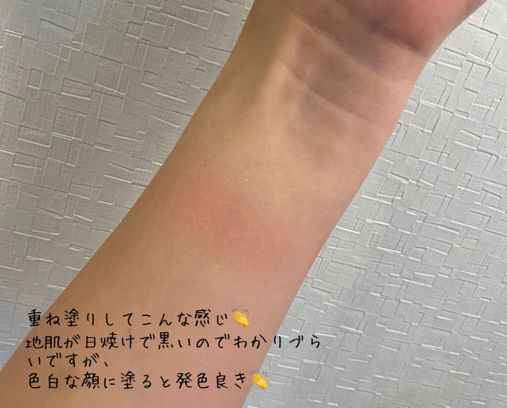 柔らかい溶け込むような白みピンクが可愛すぎる🍑🎀 しっとり柔らかい質感🤍 日本人向けだからか、韓国の白みチークよりは発色しやすい感じがするところも好き! ブラシ付きで持ち運びに便利なのもありがたい…!