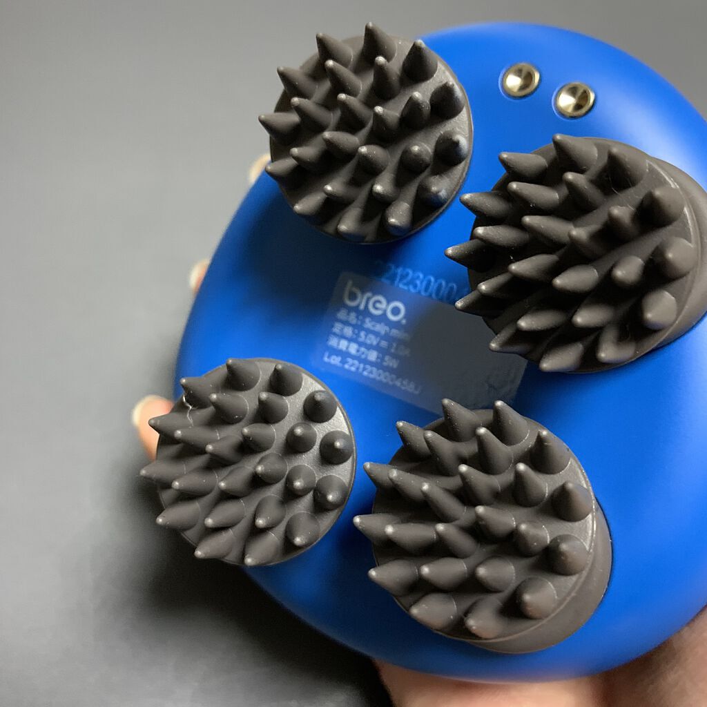 リラックス製品のグローバルブランド「breo」❗️電動ヘッドブラシ「scalpシリーズ」のscalpminiblueを使ってみました♫高級感あるブルーのメタリックカラー人体工学に基づいて設計された形状だそう手のカーブにフィットして滑...