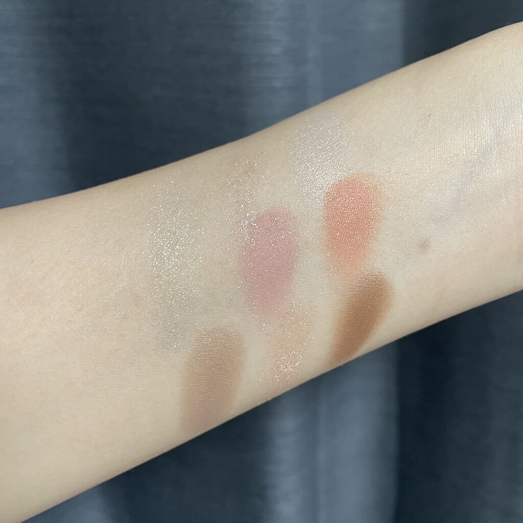 mude.の方がよりあたたかみのある印象で全体的に使いやすい色味が入っている感じ◎ ラメ感もギラギラするよりかは上品なキラキラ感✨ rom&ndはmude.に比べるとフレッシュな印象!春や夏に使うと映えそう❣️ ラメ感も強く、目立つかな。 似てるかもしれないからと買うのを長い間悩んでいましたが、仕上がりが全然変わってくるので、買って良かった😂❤️ 粉質はブランドも違うので違ったよ✨ rom&ndの方がしっとり感があって強く発色する感じ。 mude.は淡い発色で、初心者さんも使いやすいと思った🫶🏻