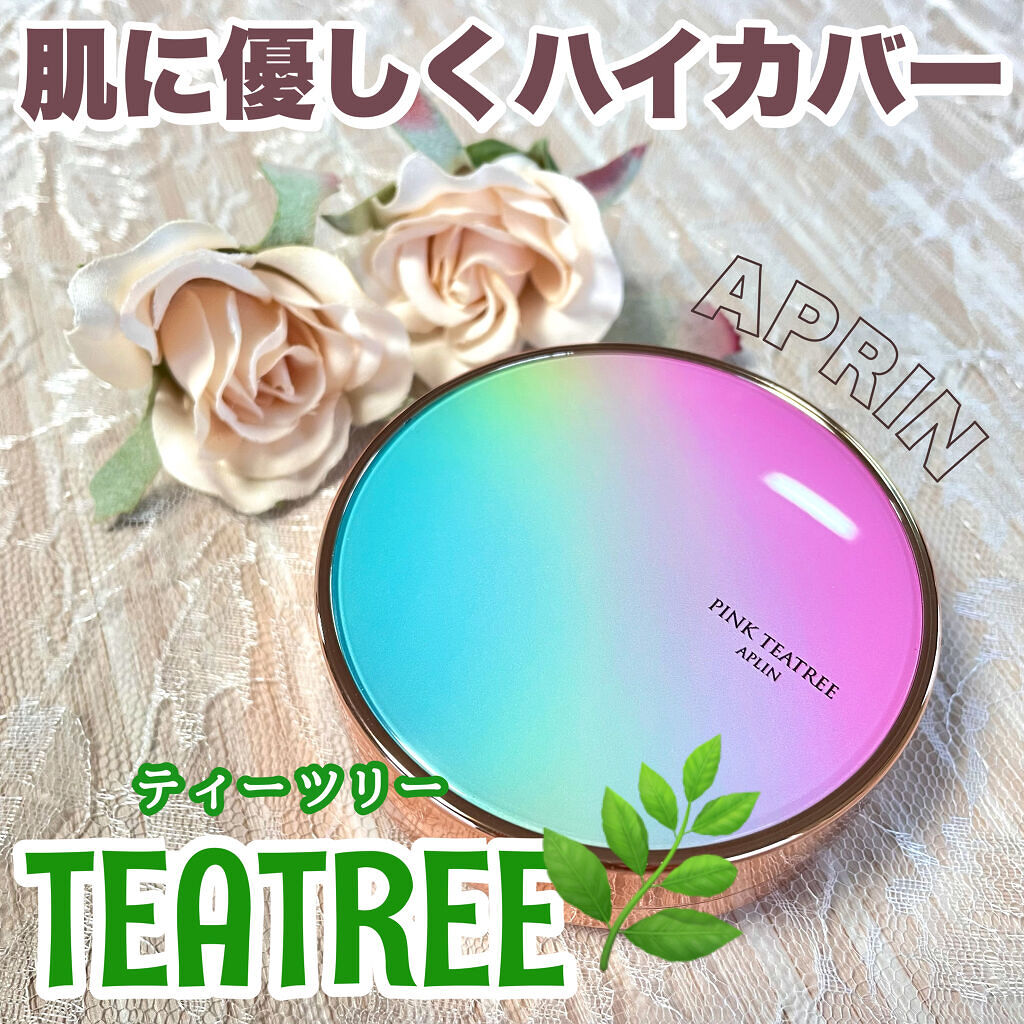 APLIN ピンクティーツリーカバークッション 21号ライトベージュ 2,490円(税込) 少量でよく伸びてハイカバー! 赤みやくすみをしっかりカバ一できるのに、厚塗り感のないなめらかな仕上がり♡ ハイカバーなのにナチュラルなツヤ感とサラッとしつつ、乾燥崩れしにくい仕上がりに感動します!!