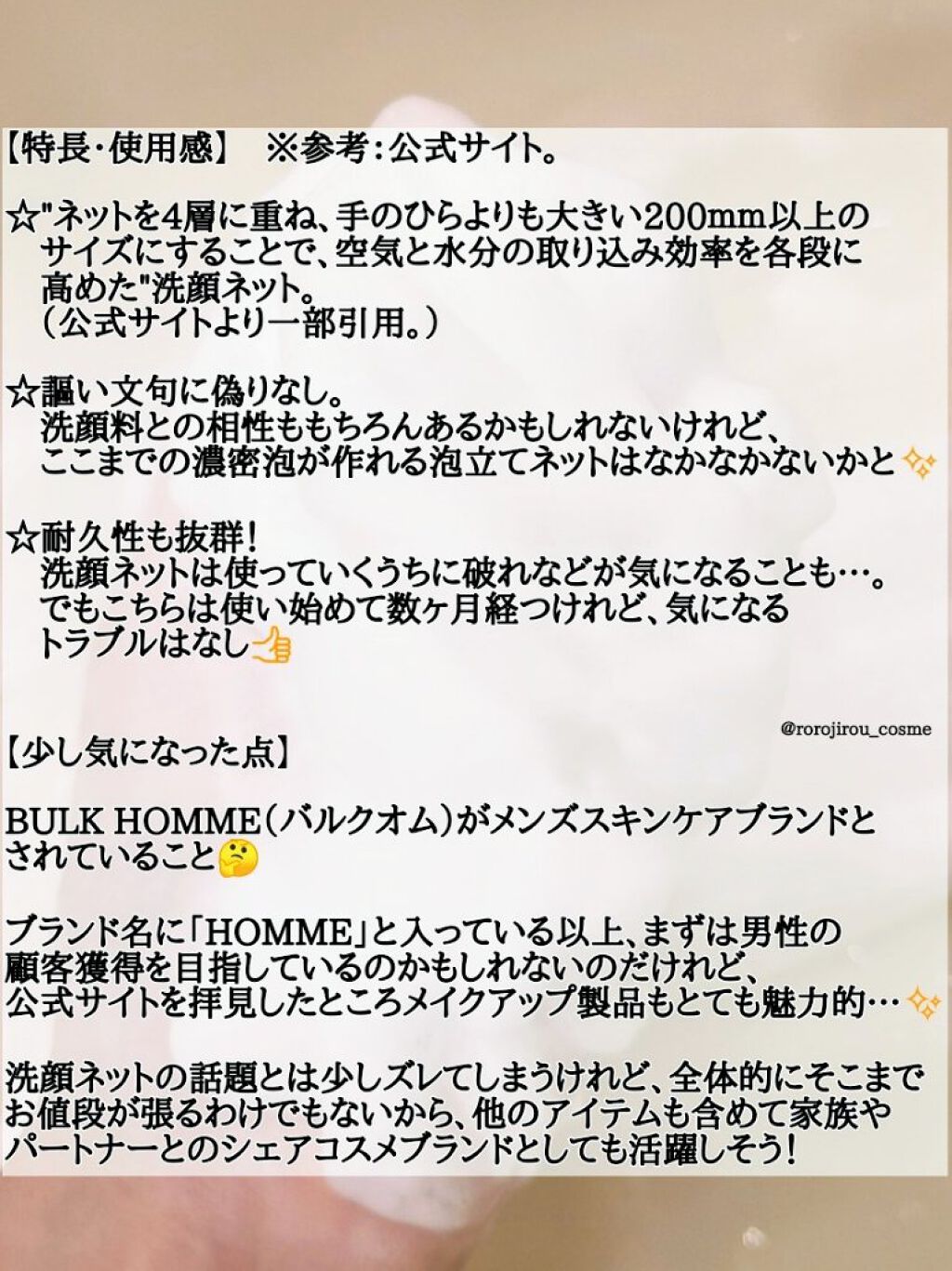 *:*:*:*:*:*:*:*BULKHOMMETHEBUBBLENET660円*:*:*:*:*:*:*:*バルクオムの洗顔ネット使ったことありますか?😏他の洗顔ネットより2回りくらい大きくて泡もモッコモコで生クリームみたいな泡がたっぷりで...