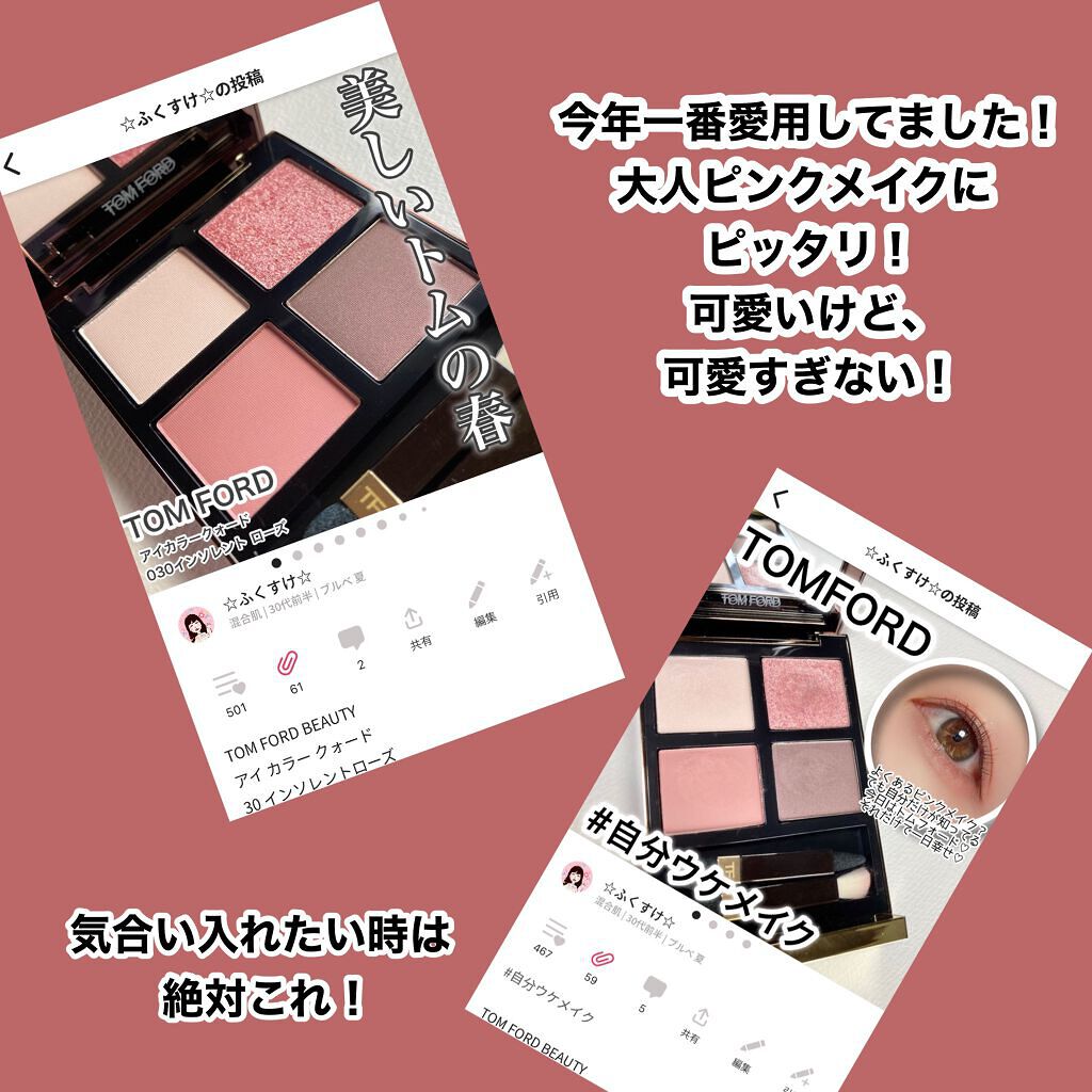 トムフォードってパキパキ発色のアイシャドウだと思ってたけど実際使ってみたらそんなことないのね☺️ 一度塗りだと淡く、2〜3回重ねると結構色が出る感じ! これは買ってよかった物でした〜🎀 たくさん使っていきたいです(*・ᴗ・*)و