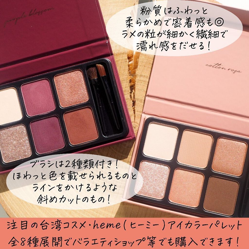 - 台湾生まれのジェンダーレスメイクアップブランド「heme(ヒーミー)」のアイシャドウ。 男性、女性を問わずにお使いいただけるファーストステップコスメ。 微細パウダーを使用し、高密着で崩れにくい。 しっかり色付き、グラデーションメイクもこれ1つで完成です。 それぞれ6色配合で、グリッター、ベルベットマット、シマー、メタルがバランスよく入っていて使いやすいパレット。 アジア人の肌の色味に合わせて作られています。