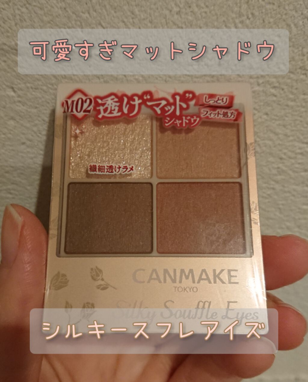 - シルキースフレアイズの姉妹品♡ 肌に溶け込むような透けマットシャドウ 透け感のある柔らかい仕上がりになるマット3色と、透け発色の繊細ラメ1色のパレットシャドウ♡ 完全マットアイや、ラメ×マットアイなど、メイクのパターンを楽しみましょう!