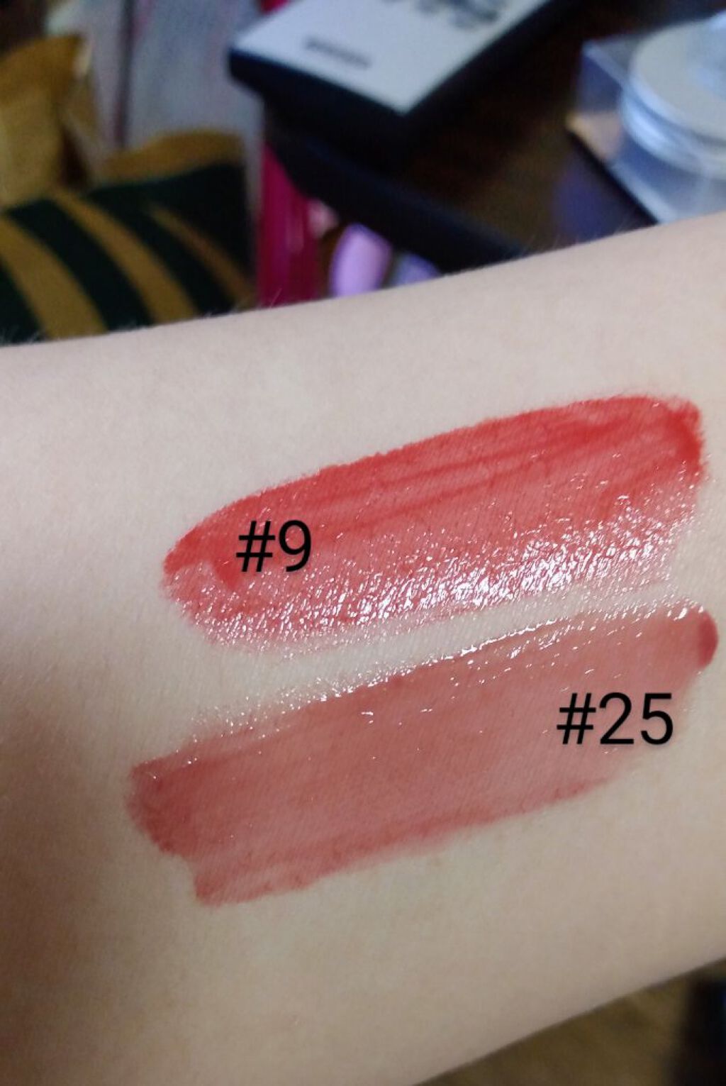 【使った商品】【色味】スウォッチがうまくいかず画像拝借しましたwwwコーラル系とピンクです!!【ラメorマット】ラメ強いと思います!!【密着感】手の甲ではピタッと密着しました!!【発色】発色は画像みたいに出すにはだいぶ重ねな無理と思います涙袋...