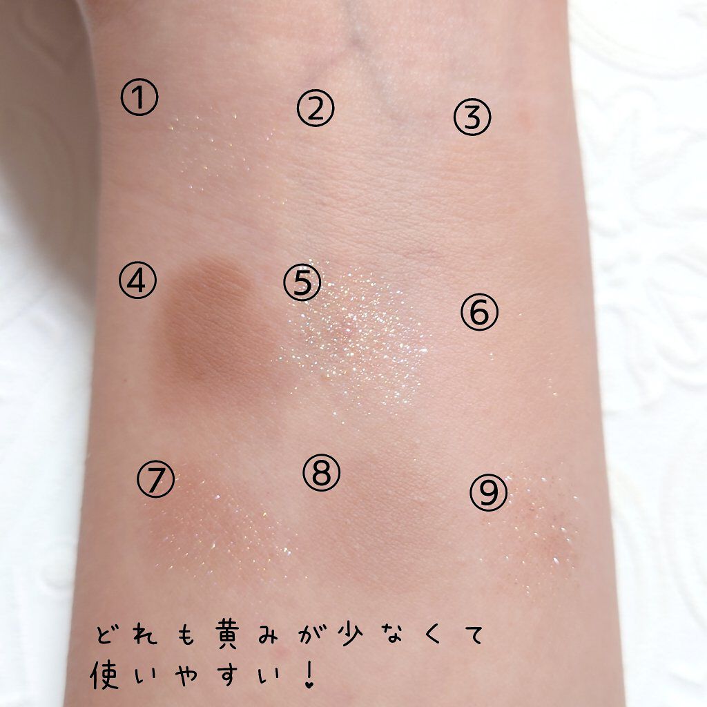 ブルベ向けヌードパレットというだけあって、上の段のピンクも下の段のブラウンも優しい発色。 粉質はサラッサラです。 サラサラですが密着はしっかりしてくれるので、色持ちは悪くないです。 優しくふわっと仕上げたいときにぴったりのパレット。