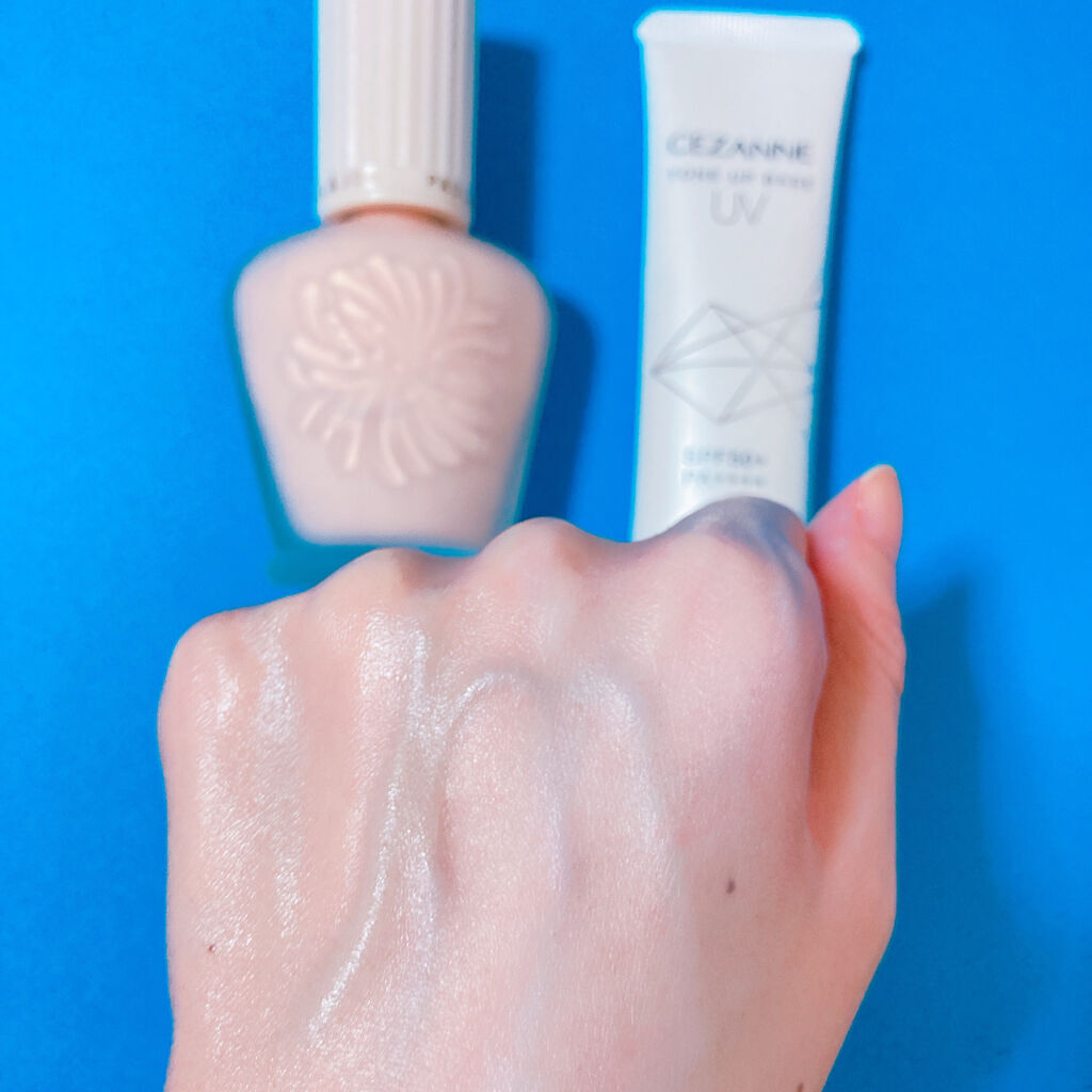 最初は伸ばしやすいテクスチャーですが最終的に肌に密着して、肌がもちっとしてくれます🫶 私はラロッシュポゼを塗っておくと、日中乾燥を圧倒的に感じにくくなります! 毛穴や色むらのカバー力はほぼありませんが、ツヤ肌になることで光でカバーしてくれます🙆♀️ セザンヌなのでとにかくお手頃な価格でトーンアップ下地を探している人におすすめです🙋♀️ ラ ロッシュ ポゼよりサラッとしたテクスチャーで、手の甲にのせて傾けると少したれるほどです🙌 &beのコスメは紫外線吸収剤不使用だったり、その他の成分もフリーだったり、肌負担が少ないですよね👏 トーンアップ感が強く、このトーンアップ感は夜まで続いてくれるので私は肌のくすみも気になりにくくなりました🙆♀️ 保湿感があり、肌もツヤ肌になります🙌 個人的にはファンシーラーとの相性はとってもいいのですが、他ブランドのファンデと合わせると少しヨレが気になりました!