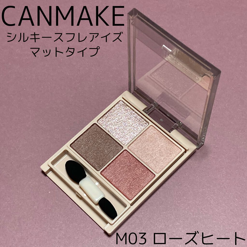 本日のアイシャドウ♡#キャンメイク#シルキースフレアイズマットタイプM03ローズヒートくすみ感のあるカラーで、ダーク系だけど、くすみすぎなく可愛さもありながら、カッコよく決まる✨目力をしっかり出したい方にオススメなカラー!!ラメがトーンアップ...