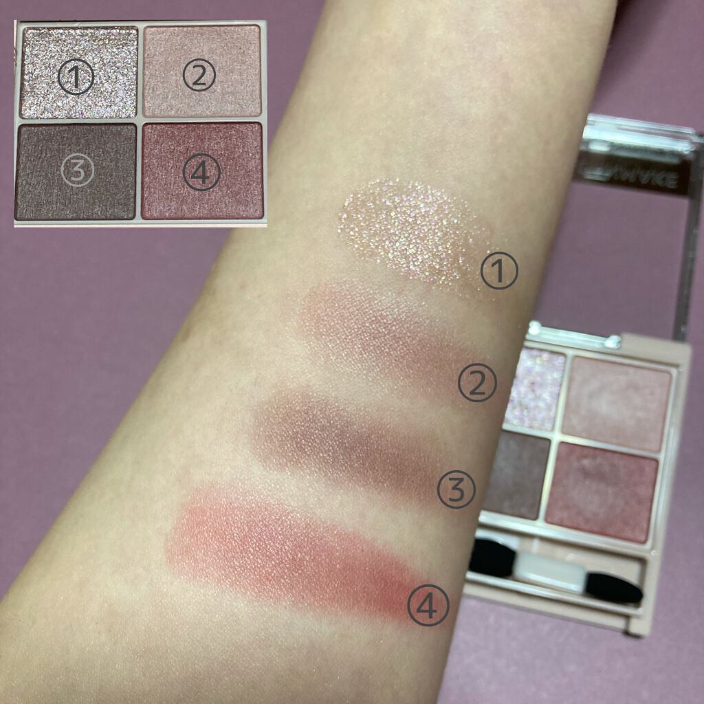 - シルキースフレアイズの姉妹品♡ 肌に溶け込むような透けマットシャドウ 透け感のある柔らかい仕上がりになるマット3色と、透け発色の繊細ラメ1色のパレットシャドウ♡ 完全マットアイや、ラメ×マットアイなど、メイクのパターンを楽しみましょう!