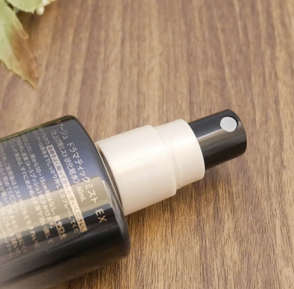 - <ドラマティックミスト EX> 水、エタノール、ジメチコン、(トリメチルシロキシケイ酸/ジメチコノール)クロスポリマー、グリセリン、ジフェニルシロキシフェニルトリメチコン、塩化Na、ラウリルベタイン、カニナバラ果実エキス、シャクヤク根エキス、アセチルヒアルロン酸Na、水溶性コラーゲン、BG、クエン酸Na、メタリン酸Na、クエン酸、ピロ亜硫酸Na、ミリスチン酸イソプロピル、トリフルオロアルキルジメチルトリメチルシロキシケイ酸、フェノキシエタノール、安息香酸Na、安息香酸、香料