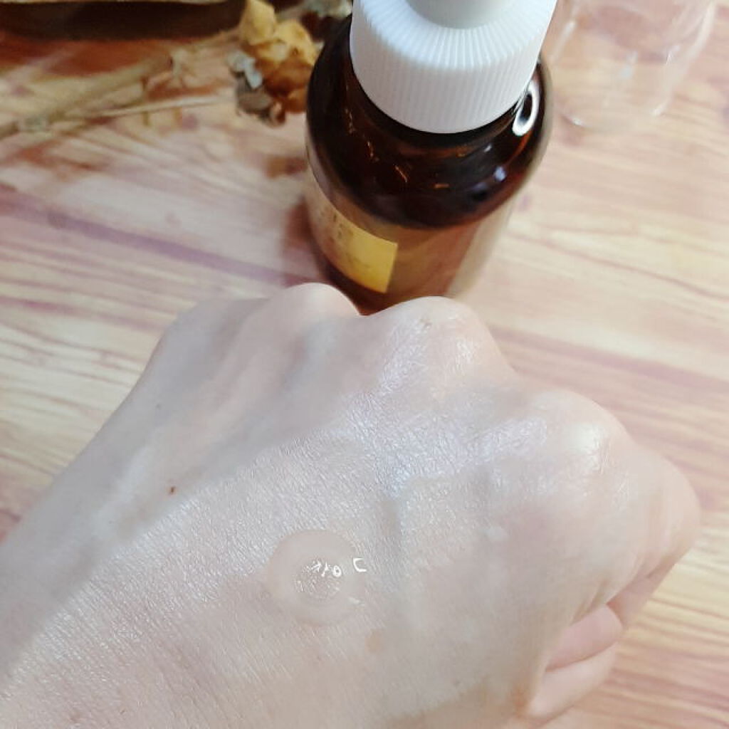 さらっと乳液みたいな感触のうすいピンク色の美容液です。 伸びが良く、きしみは気になりませんね。 なじんだ後はしっとりなめらかで、使い心地が私の好みです。 軽い感触で、べたつかず、白浮きすることもないので、朝ファンデの前に使いやすいです。