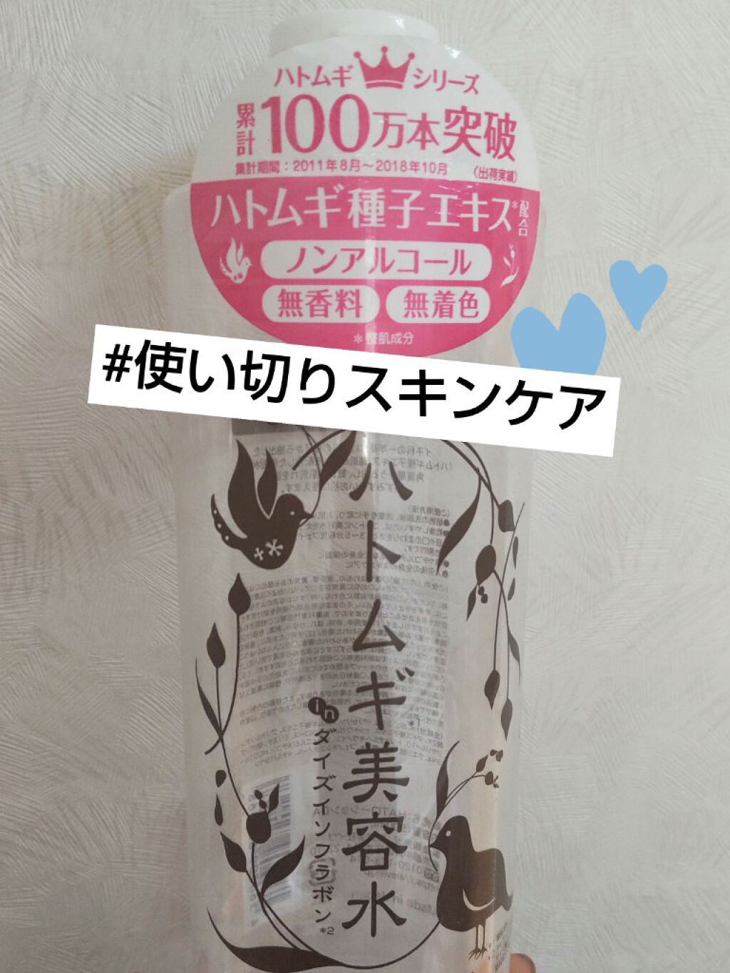 有名なハトムギ化粧水より安くて、身体用に使いたくて買ってみました🤍(*´꒳`*) ボディークリーム毎日してましたが、夏なのでバシャバシャ系に変えてみようかと(*^^*)🩷 口の部分だけはいで使おうとしたら丸裸💦😆