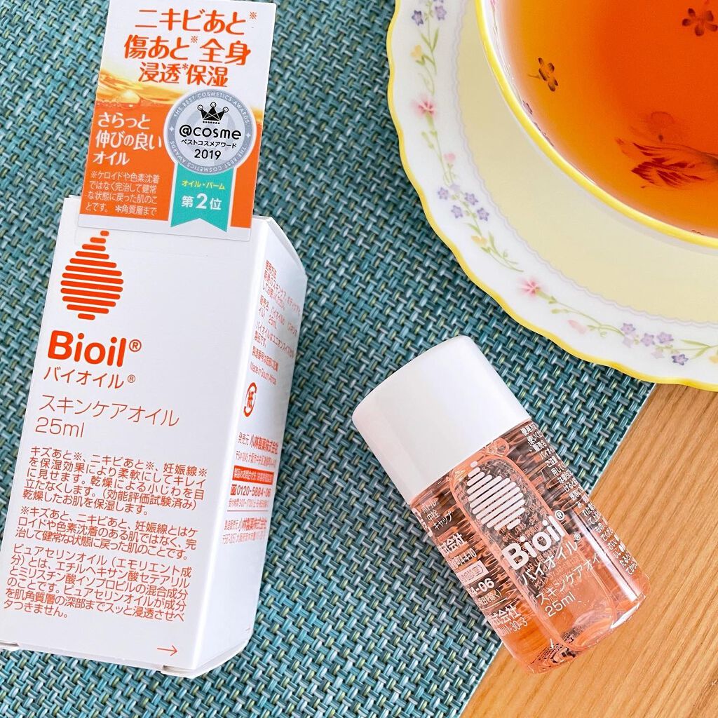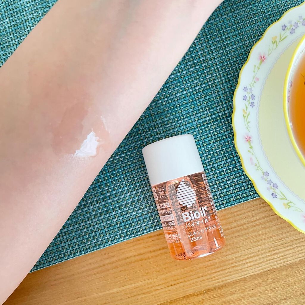 ガチで10本はリピートしています! この25mlはミニサイズですが、大容量125mlのタイプを長女を妊娠した8年前から本気リピートしていました◎ 乾燥肌への保湿力、伸びが良く、ベタつきにくい、洋服への着色が少ない、香りが強くない、液が漏れにくい容器、案外これ全部を満たしてくれるオイルって少ないです◎ 最近はバイオイルでクレンジングをする人も増えていますよね⭐︎ボディー保湿だけで無く、フェイス保湿やクレンジングにも使える汎用性も人気な理由ですよね◎