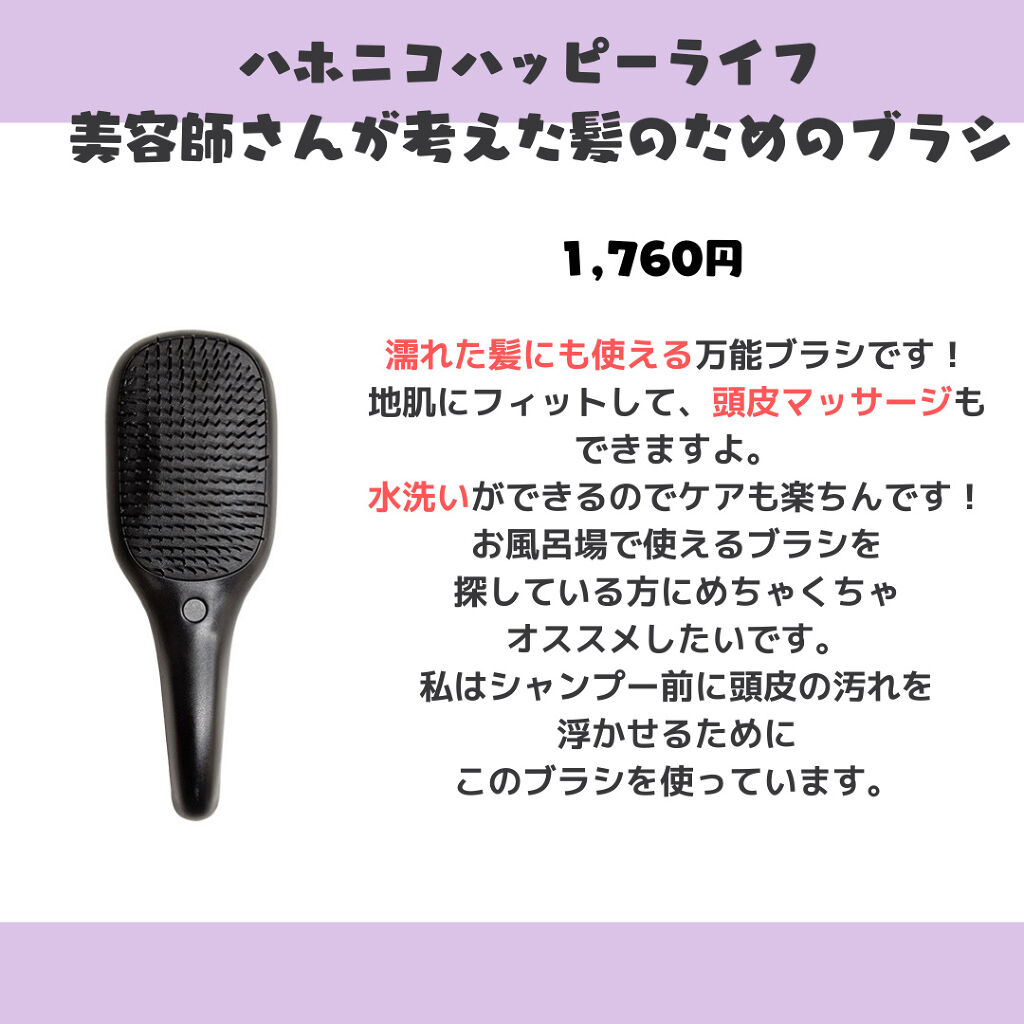 ▷①ハホニコ カラミーノ WET&DRAYヘアブラシ 1,760円②ukaウカスカルプブラシケンザン バリカタ 2,200円①ブラシは濡れた髪でも乾いた髪でも使える優れものです!シャンプー前に軽くブラッシングする時に使っているのですが、程よく...