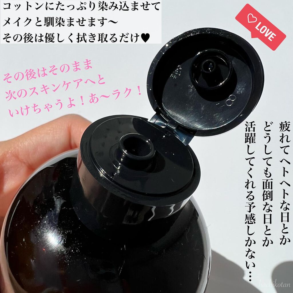 洗い流し不要のウォータークレンジングなので、嫌なベタつきがなく、まるで洗顔した後のようにスッキリ&サッパリ! 拭き取りタイプのクレンジング💧 シャバシャバのテクスチャーのクレンジング液をコットンにポンプ3〜4回押した量をとり、メイクを優しく拭きとります◎ ウォータープルーフなど落ちにくいメイクは、ポイントでジュワ〜と押し当ててゆっくり落とすと良き◎