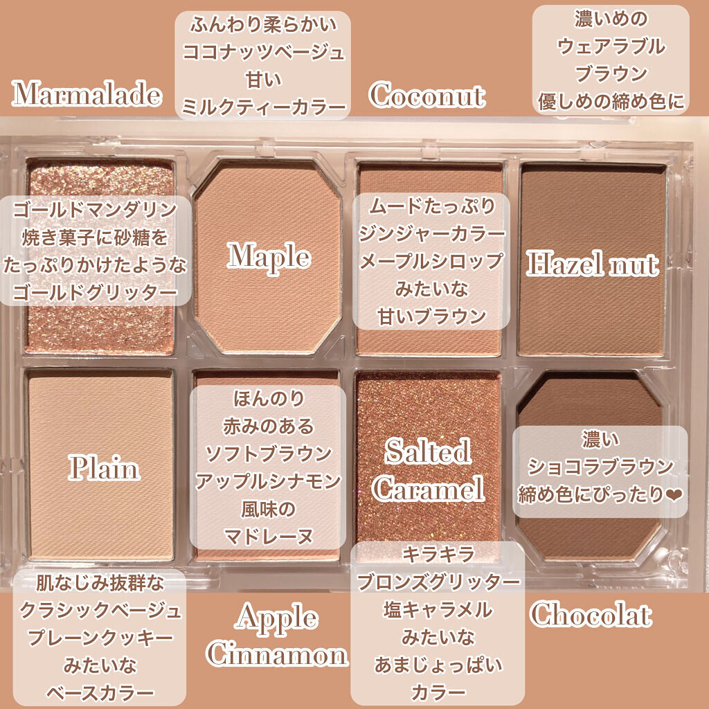 - 基本に忠実な8色アイパレット。毎日使いたいデイリーカラー構成。 マット・シマー・グリッターの幻想的なテクスチャで、感覚的で感性的にムードチェンジ。 07メレンゲ:ブルベおすすめ 08マドレーヌ:イエベおすすめ