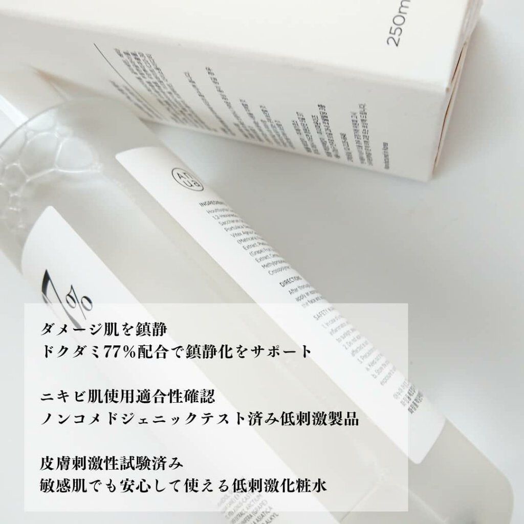 Anuaといえばこちらのトナーですよね✨ こだわった自然由来成分のドクダミエキスを肌に最も適切な比率の77%でたっぷり詰め込んでるそう。 ノンコメドジェニックテスト済み、皮膚刺激性試験で[無刺激]判定を受けているのも敏感肌の方から好まれる理由のの一つ。 サラッとしたテクスチャーでみずみずしい使い心地です。