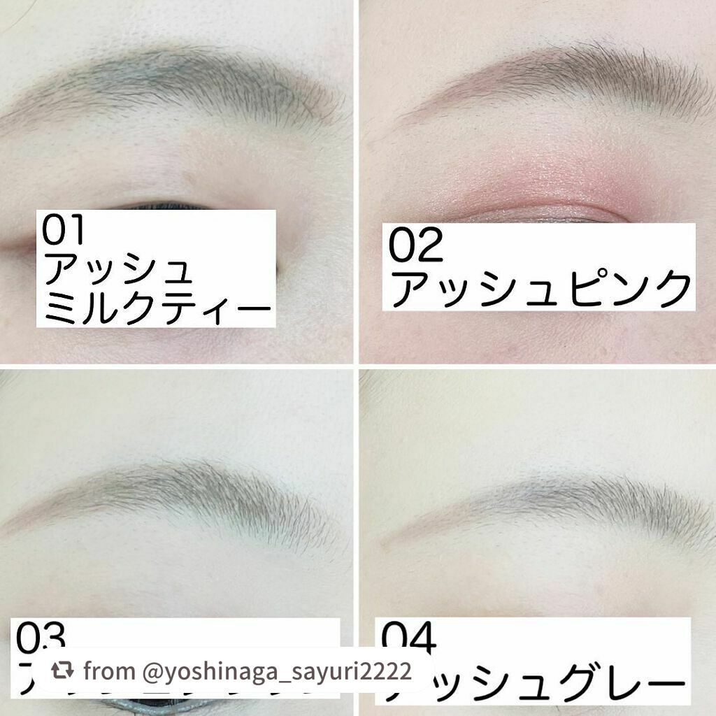 - <01 アッシュミルクティー> ベヘン酸、モクロウ、トリエチルヘキサノイン、ダイマージリノール酸(フィトステリル/イソステアリル/セチル/ステアリル/ベヘニル)、トリ酢酸テトラステアリン酸スクロース、水添ヒマシ油、セスキイソステアリン酸ソルビタン、スクワラン、ラウロイルリシン、水酸化Al、トコフェロール、シリカ、セルロース、マイカ、酸化鉄、酸化チタン <02 アッシュピンク> ベヘン酸、モクロウ、トリエチルヘキサノイン、ダイマージリノール酸(フィトステリル/イソステアリル/セチル/ステアリル/ベヘニル)、トリ酢酸テトラステアリン酸スクロース、水添ヒマシ油、セスキイソステアリン酸ソルビタン、スクワラン、ラウロイルリシン、水酸化Al、トコフェロール、シリカ、セルロース、マイカ、酸化鉄、酸化チタン <03 アッシュブラウン> ベヘン酸、モクロウ、トリエチルヘキサノイン、ダイマージリノール酸(フィトステリル/イソステアリル/セチル/ステアリル/ベヘニル)、トリ酢酸テトラステアリン酸スクロース、水添ヒマシ油、セスキイソステアリン酸ソルビタン、スクワラン、ラウロイルリシン、水酸化Al、トコフェロール、シリカ、セルロース、マイカ、酸化鉄、酸化チタン <04 アッシュグレー> ベヘン酸、モクロウ、トリエチルヘキサノイン、ダイマージリノール酸(フィトステリル/イソステアリル/セチル/ステアリル/ベヘニル)、トリ酢酸テトラステアリン酸スクロース、水添ヒマシ油、セスキイソステアリン酸ソルビタン、スクワラン、ラウロイルリシン、水酸化Al、トコフェロール、シリカ、セルロース、マイカ、酸化鉄、酸化チタン <05 アッシュオリーブ> ベヘン酸、モクロウ、トリエチルヘキサノイン、ダイマージリノール酸(フィトステリル/イソステアリル/セチル/ステアリル/ベヘニル)、トリ酢酸テトラステアリン酸スクロース、水添ヒマシ油、セスキイソステアリン酸ソルビタン、スクワラン、ラウロイルリシン、水酸化Al、トコフェロール、シリカ、セルロース、マイカ、酸化鉄、酸化チタン