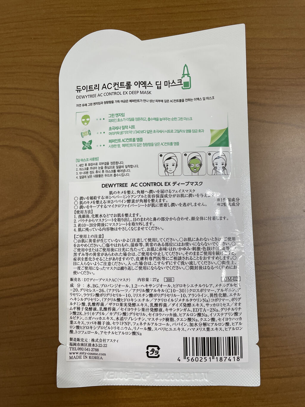 - 火照った肌の温度を下げ(クーリング効果*)、気になる毛穴悩みに効果が期待できる*このマスクパックは、べたついたり重くなく使用感が良いという評価を受けています。*原料の特性による DEWYTREEならではの独自成分であるシカミントを配合して鎮静効果を高め、グリーン極細糸シートが肌に密着して乾燥させずに使用できます。