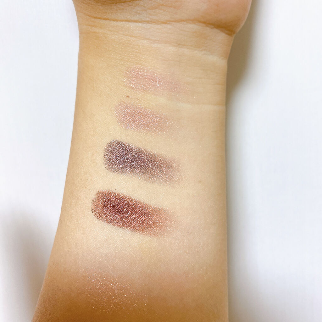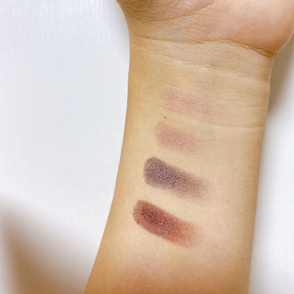 普段、ラメ入りのアイシャドウしか使わないからか、右下のマットの色が私には難しくて😅ベースに使うくらいでしょうか。 右上のラメは本当に使いやすいのですが😂 左上のラメは多きめなので、乗せすぎないように気を付けています。