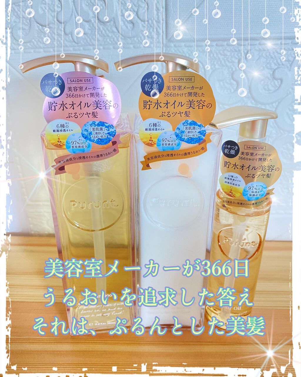 - 美容室メーカーが 366日かけて開発した貯水オイル美容のぷるツヤ髪 肌本来の環境を整え、みずからうるおう地肌に導く「美肌菌」に着目。髪と地肌をうるおす「美容液成分」と、水分蒸散を防ぐ「浸透オイル」を独自バランスで調合した、スキンケア発想の「パサつき・乾燥」特化型ダメージケアブランドです。 選択吸着機能成分:ヒドロキシアパタイト配合→汚れの原因を選択的に洗浄し、必要なうるおいをキープします。 キューティクルケア成分:加水分解シルク*1・加水分解ケラチン(羊毛) 配合→なめらかな指通りの良い髪ヘ整えます。 *1 (加水分解シルク/PGプロピルメチルシランジオール)クロスポリマー