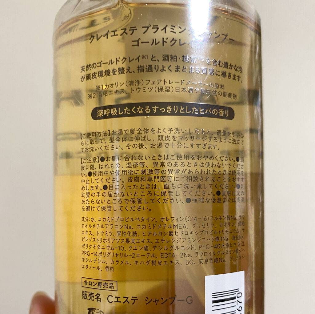 - <シャンプー> 天然のゴールドクレイ※1 と、酒粕・糖蜜※2 を含む豊かな泡が頭皮環境を整え、指通りよくまとまる質感に導きます。 ナチュラルで爽やかなラベンダーにすっきりとしたユズを合わせ、清潔感あふれるフローラル、自然の息吹を思わせるヒバが重なるハーバルウッディ。 本来であれば廃棄されてしまう、国産のユズの果皮から抽出された精油を配合しています。 ※1 カオリン(清浄)フェアトレードメーカー原料、※2 酒粕エキス、トウミツ(保湿)日本酒や和三盆の副産物 【販売名】Cエステ シャンプーG <ヘアマスク> 天然のゴールドクレイ※1 と、シュガースクワラン※2、吸収型ヒアルロン酸※3 を配合。指通りよくまとまる質感に導きます。 ナチュラルで爽やかなラベンダーにすっきりとしたユズを合わせ、清潔感あふれるフローラル、自然の息吹を思わせるヒバが重なるハーバルウッディ。 本来であれば廃棄されてしまう、国産のユズの果皮から抽出された精油を配合しています。 ※1 カオリン(清浄)フェアトレードメーカーの原料、※2 スクワラン(保湿)、※3 ヒアルロン酸ヒドロキシプロピルトリモニウム(補修) 【販売名】Cエステ ヘアパックG