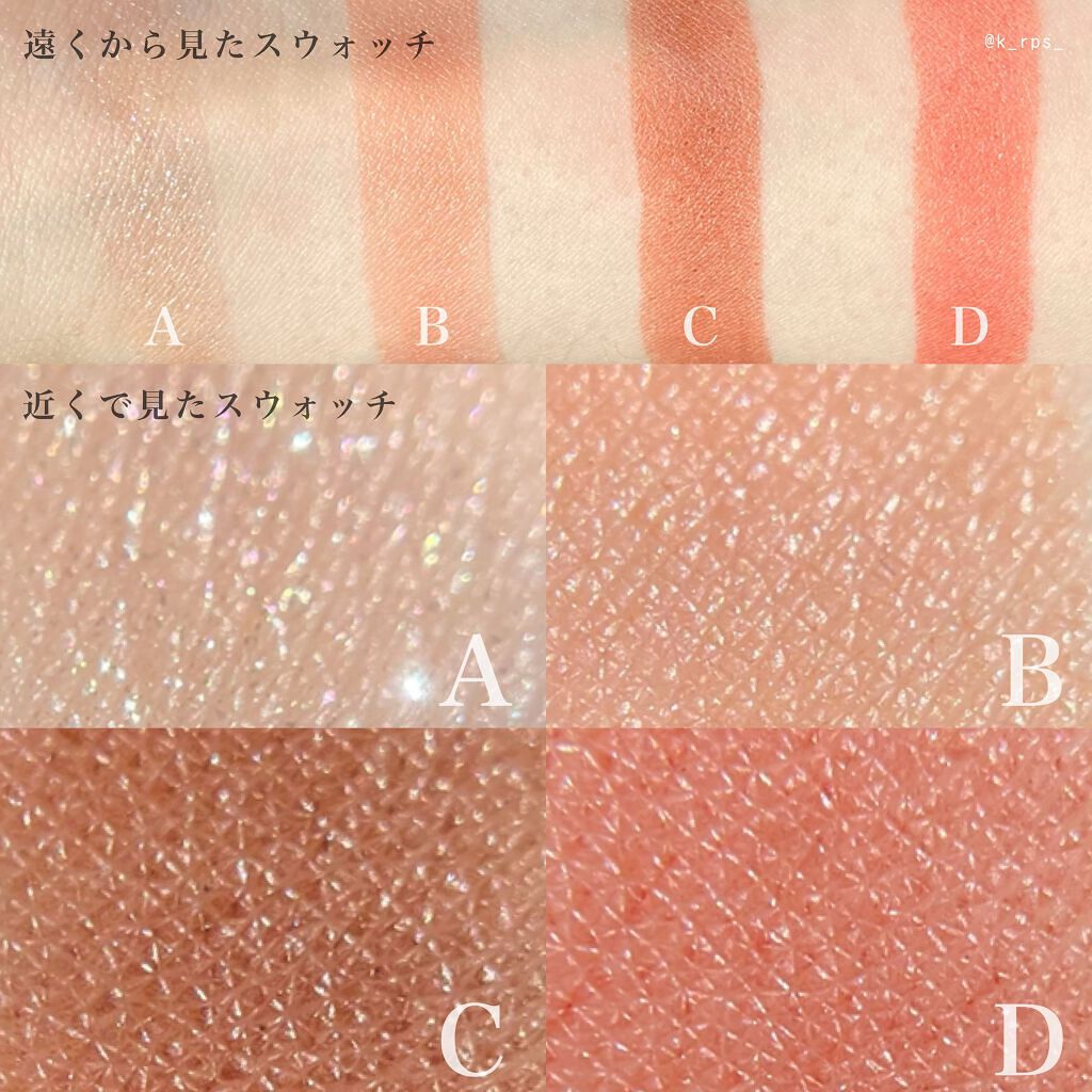 今回は手持ちシルキースフレアイズ4色を徹底比較〜。・*・:≡( ε:)💖パレットの比較は2枚目スウォッチの比較は3枚目メイクの比較は4,5枚目をご参照ください(b・ω・d)ちなみにメイクは違いが分かりやすくなるように同じ方法でのせております!...