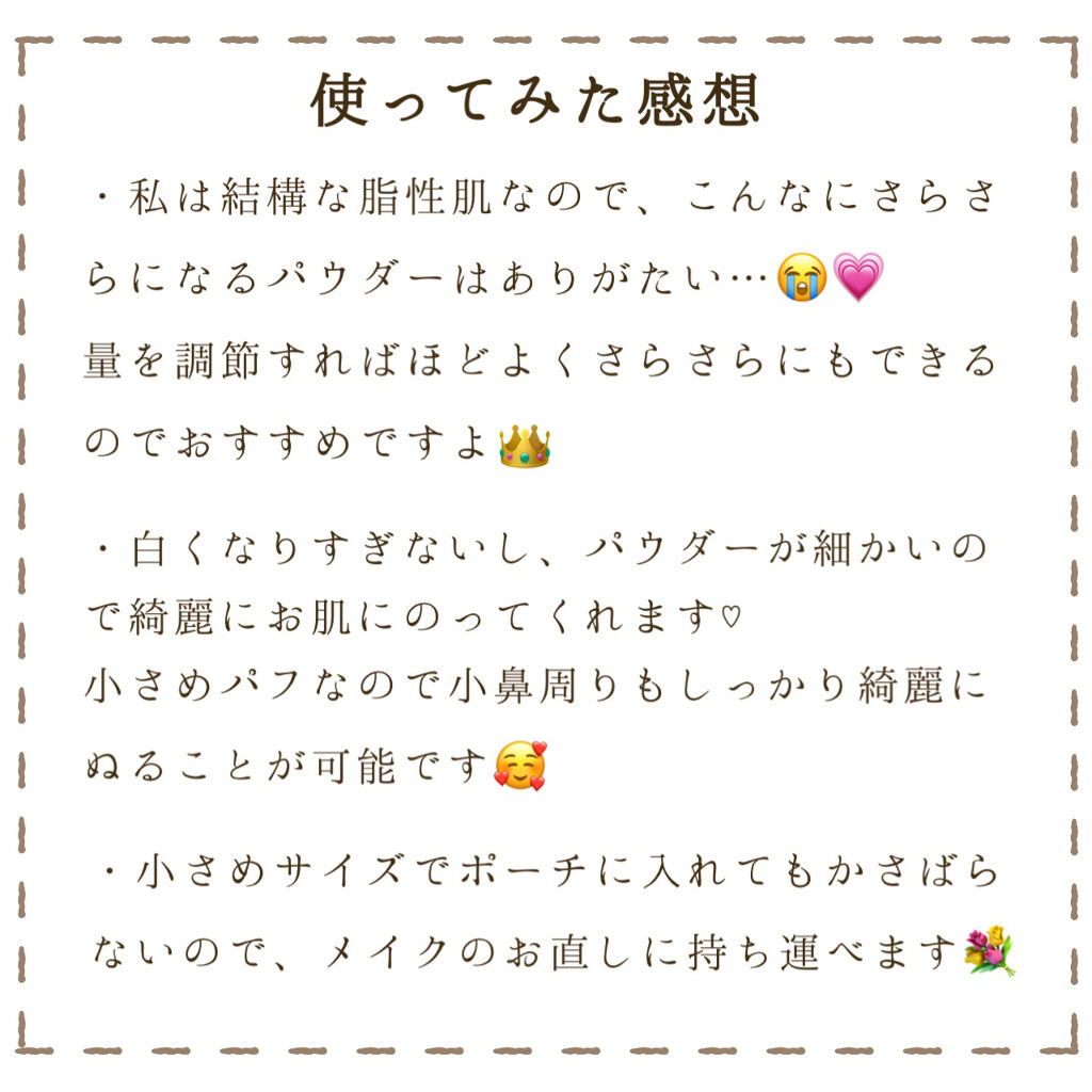 | フェイスパウダーランキング第17位 | パフは肉厚でリッチな使用感。 ふわふわで肌あたりも良くて贅沢な使い心地..✨ パウダーは粒子が細かくてふわふわ! | 詳細を見る | |