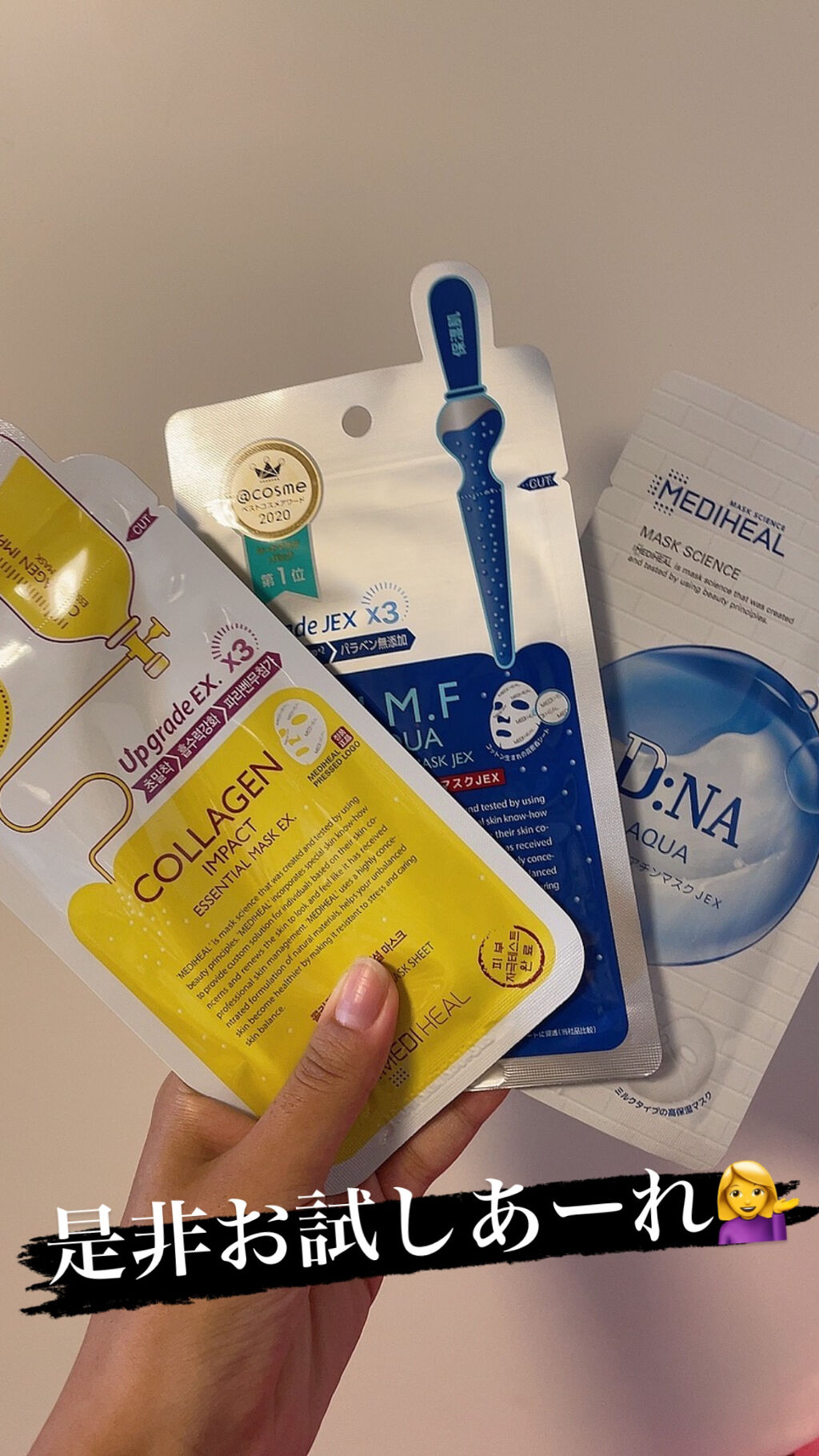 韓国パックの火付け役的存在のMEDIHEAL。色々試したくて5種類使ってみたけど、やっぱり青と緑が好きでした💭 N.M.FアクアアンプルマスクJEX ティーツリーケアソリューション アンプルマスクJEX