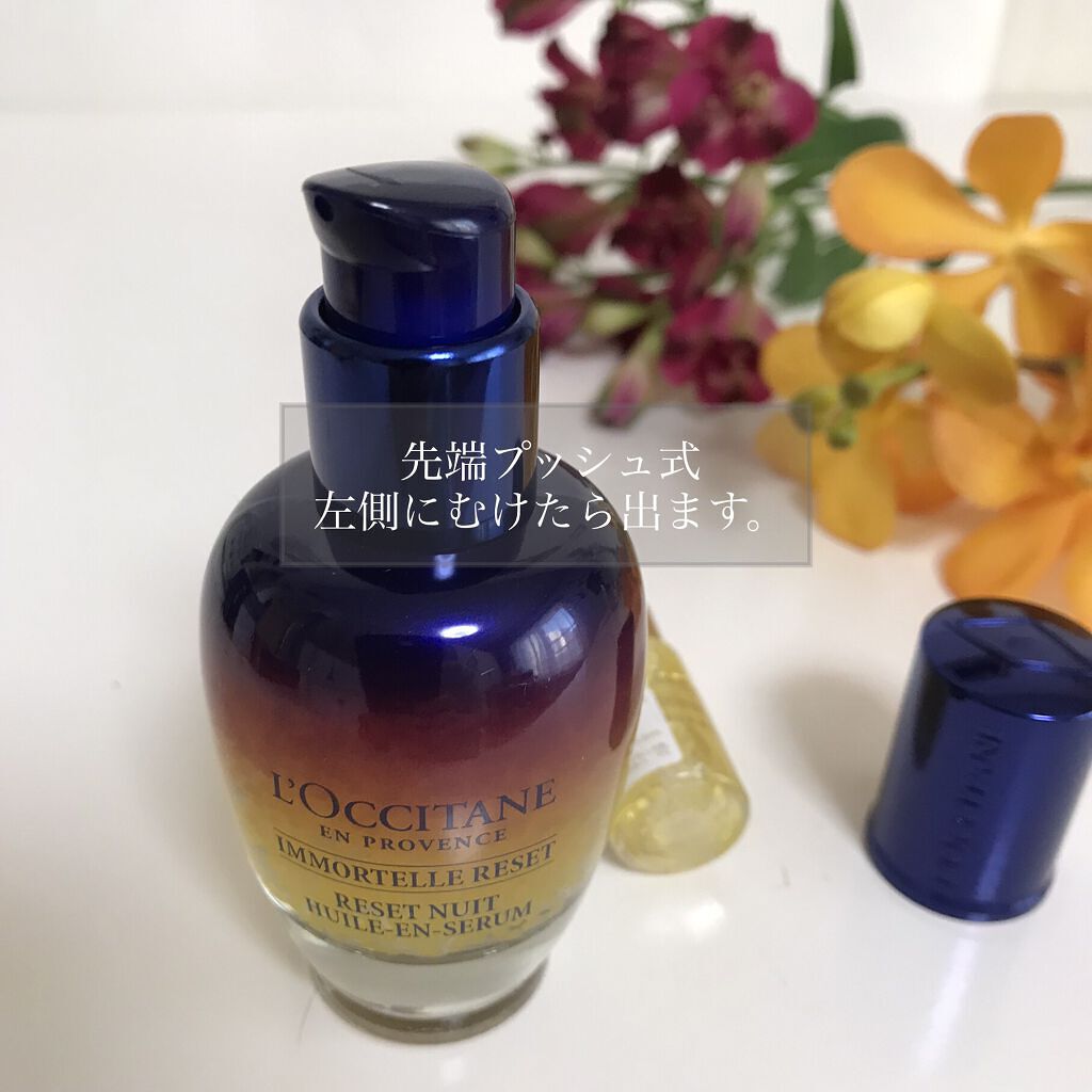 L'OCCITANEイモーテルオーバーナイトリセットセラム夜用美容液ハリ不足ダメージゴワつきくすみが気になる人におすすめテクスチャーはトロミがあり伸びは良くしっとりと潤う1か月使ってみてあらためてレビューします♪#L'OCCITANE#イモー...