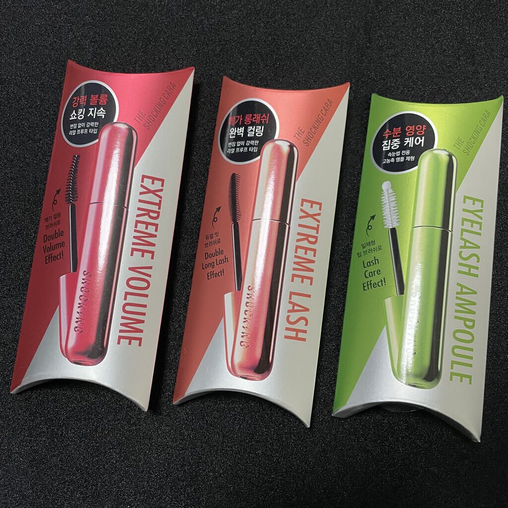- ショッキングシリーズの中でも、「もっともリピ買いが多い」と言われるのが、なりたい顔に合わせて選べる6種のマスカラとアイラッシュアンプルの全7種が揃うマスカラ。マスクから漏れる水蒸気にも負けないキープ力も話題です。
