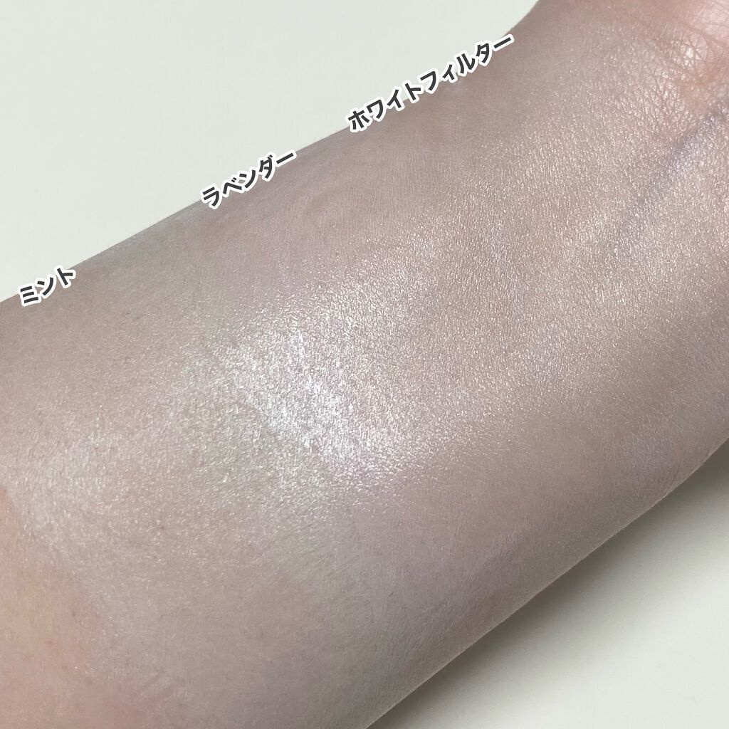 - <ミント> シクロペンタシロキサン、水、グリセリン、酸化チタン、エチルヘキサン酸セチル、BG、ジフェニルシロキシフェニルトリメチコン、メタクリル酸メチルクロスポリマー、メトキシケイヒ酸エチルヘキシル、PEG-10ジメチコン、セスキイソステアリン酸ソルビタン、ジグリセリン、セスキオレイン酸ソルビタン、硫酸Mg、セチルPEG/PPG-10/1ジメチコン、(ベヘン酸/エイコサン二酸)グリセリル、ラウロイルリシン、タルク、ジステアルジモニウムヘクトライト、水酸化Al、アルミナ、ステアリン酸、エチルヘキシルグリセリン、フェノキシエタノール、ジメチコン、炭酸プロピレン、ハイドロゲンジメチコン、ポリクオタニウム-51、ヒアルロン酸Na、酸化スズ、ラベンダー油、ラベンダー花エキス、ヨーロッパキイチゴ果実エキス、ローヤルゼリーエキス、ダイズ種子エキス、(+/-)酸化亜鉛、マイカ、水酸化クロム、グンジョウ、酸化鉄、カルミン、ジミリスチン酸Al <ブルー+(限定)> 水、シクロペンタシロキサン、グリセリン、酸化チタン、酸化亜鉛、BG、エチルヘキサン酸セチル、ジフェニルシロキシフェニルトリメチコン、メタクリル酸メチルクロスポリマー、メトキシケイヒ酸エチルヘキシル、PEG-10ジメチコン、セスキイソステアリン酸ソルビタン、セスキオレイン酸ソルビタン、(ベヘン酸/エイコサン二酸)グリセリル、セチルPEG/PPG-10/1ジメチコン、ラウロイルリシン、硫酸Mg、アルミナ、ジステアルジモニウムヘクトライト、水酸化Al、ジグリセリン、ステアリン酸、エチルヘキシルグリセリン、フェノキシエタノール、ジメチコン、炭酸プロピレン、ハイドロゲンジメチコン、ジミリスチン酸Al、ポリクオタニウム-51、酸化スズ、ヒアルロン酸Na、オトギリソウ花/葉/茎エキス、ダイズ種子エキス、ラベンダー油、ティーツリー葉油、プルーン種子エキス、ローヤルゼリーエキス、ヒメフウロエキス、ラベンダー花エキス、ヨーロッパキイチゴ果実エキス、アーチチョーク葉エキス、グンジョウ、タルク <レモン> シクロペンタシロキサン、水、グリセリン、酸化チタン、エチルヘキサン酸セチル、BG、酸化亜鉛、ジフェニルシロキシフェニルトリメチコン、メタクリル酸メチルクロスポリマー、メトキシケイヒ酸エチルヘキシル、PEG-10ジメチコン、セスキイソステアリン酸ソルビタン、ジグリセリン、セスキオレイン酸ソルビタン、硫酸Mg、セチルPEG/PPG-10/1ジメチコン、(ベヘン酸/エイコサン二酸)グリセリル、ラウロイルリシン、ジステアルジモニウムヘクトライト、水酸化Al、エチルヘキシルグリセリン、アルミナ、合成金雲母、フェノキシエタノール、ステアリン酸、ジメチコン、炭酸プロピレン、ハイドロゲンジメチコン、ポリクオタニウム-51、ヒアルロン酸Na、酸化スズ、ラベンダー油、ラベンダー花エキス、ヨーロッパキイチゴ果実エキス、ローヤルゼリーエキス、ダイズ種子エキス、酸化鉄、ジミリスチン酸Al、タルク、トコフェロール <ラベンダー> シクロペンタシロキサン、水、グリセリン、酸化チタン、エチルヘキサン酸セチル、BG、ジフェニルシロキシフェニルトリメチコン、メタクリル酸メチルクロスポリマー、メトキシケイヒ酸エチルヘキシル、PEG-10ジメチコン、セスキイソステアリン酸ソルビタン、ジグリセリン、セスキオレイン酸ソルビタン、硫酸Mg、セチルPEG/PPG-10/1ジメチコン、(ベヘン酸/エイコサン二酸)グリセリル、ラウロイルリシン、タルク、ジステアルジモニウムヘクトライト、水酸化Al、アルミナ、ステアリン酸、エチルヘキシルグリセリン、フェノキシエタノール、ジメチコン、炭酸プロピレン、ハイドロゲンジメチコン、ポリクオタニウム-51、ヒアルロン酸Na、酸化スズ、ラベンダー油、ラベンダー花エキス、ヨーロッパキイチゴ果実エキス、ローヤルゼリーエキス、ダイズ種子エキス、(+/-)酸化亜鉛、マイカ、水酸化クロム、グンジョウ、酸化鉄、カルミン、ジミリスチン酸Al <フィルターホワイト> シクロペンタシロキサン、水、酸化チタン、マイカ、グリセリン、メトキシケイヒ酸エチルヘキシル、PEG-10ジメチコン、プロパンジオール、ペンチレングリコール、酸化亜鉛、ジグリセリン、ステアリン酸、水酸化Al、オクチルドデカノール、タルク、トリイソステアリン酸ポリグリセリル-2、トリメチルシロキシケイ酸、パルミチン酸エチルヘキシル、イソステアリン酸、フェノキシエタノール、クエン酸Na、ジステアルジモニウムヘクトライト、ポリグリセリル-3ポリジメチルシロキシエチルジメチコン、ジメチコン、(ジメチコン/ビニルジメチコン)クロスポリマー、トリエトキシシリルエチルポリジメチルシロキシエチルヘキシルジメチコン、グリチルレチン酸ステアリル、トコフェロール、アルミナ、アルガニアスピノサ核油、カニナバラ果実油、マカデミア種子油、BG、ラベンダー油、ヒアルロン酸Na、ローヤルゼリーエキス、ダイズ種子エキス、ラベンダー花エキス、ジパルミチン酸アスコ