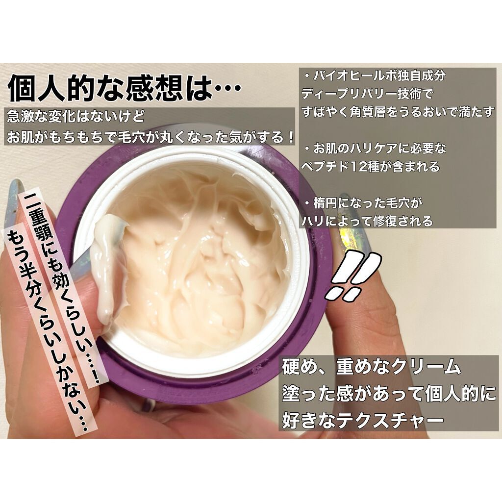 - マスクを外した跡が残る、目尻にファンデーションがたまる… 悩みが重なる今こそ、ふっくらハリクリームの出番です。 重ねても重くならない高密フィット感のしっとりクリームで、もっちりハリ肌へ。 何を届けるかより、どう届けるか。 バイオヒールボ独自成分ディープリバリー™技術採用で、すばやく角質層をうるおいで満たします。 プロバイオダーム リフティングクリーム: 乳液後、手のひらに適量をとり、目と口のまわりを避け、肌にやさしくなじませます。
