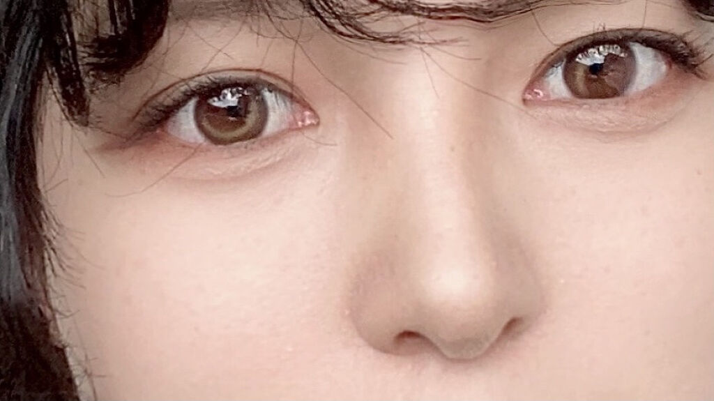 思っていたより三日月が目立つ! 目元をアップで撮影した時のかわいさは大満足♡ このデザインはあまりハイライトが目立たないものをこれからは選びたいと思いました。 ドリームブラウンはブラウンの部分がほとんど発色せずほんのり瞳の色が明るくなったかな?くらい。 ピーチクラウズより三日月部分が目立ちました。 瞳がパープルがかって見える効果は感じました◎ 私はブラウンよりこちらの方がデザインとしてバランスがとれていると思う。 ブラウンは黄色くなるからくすみやすくてイエベ向けですがピンクはパーソナルカラー関係なく使える色味です。