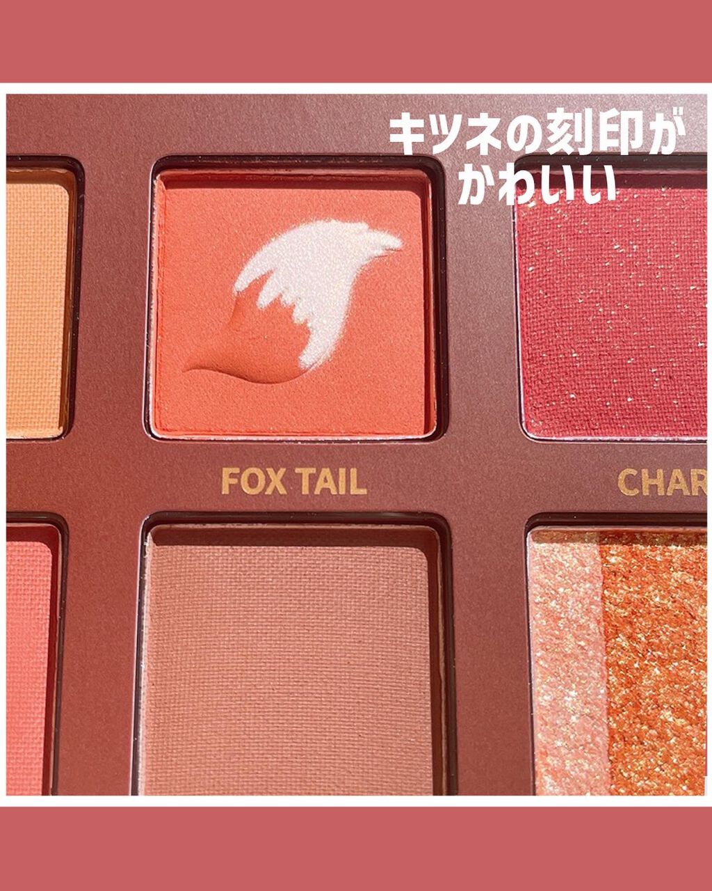 - #1.「SNSで話題になったシリーズ」 2021年のTmallで年間900万件の売り上げで、中国のSNSで超話題になりました。 #2.「4種類粉感」 滑らかマット、キラキララメ、モチモチベース状、ラメがついているマット色、多彩なカラーの組み合わせ、きめ細かい質感、肌に高密着で長持ち。 <虎> 虎からインスピレーションを受けたアニマルアイシャドウパレット。力強く活発なオレンジ・ゴールドをメインに、滑らかマット、キラキラグリッターなど多彩なテクスチャーとカラーの組合せで思い通りのメイクが完成。 <パンダ> ふんわりパンダのようなベージュ・ベビーピンクカラーや、パンダが住む竹林を表現したグリーンカラー。自由で愛らしいパンダからインスピレーションを受けたパレットで、かわいらしい印象も大人っぽい印象も1枚で叶える。 <猫> 猫からインスピレーションを受けたアニマルアイシャドウパレット。上品で落ち着いたブラウンとミステリアスなピンクパールがポイント。滑らかマット、キラキラグリッターなど多彩なテクスチャーとカラーの組合せで思い通りのメイクが完成。 <タンチョウ鶴> 鶴からインスピレーションを受けたアニマルアイシャドウパレット。使いやすいピンクベージュ系のカラーと鶴の頭をイメージした赤×白がインパクトを与える。滑らかマット、キラキラグリッターなど多彩なテクスチャーとカラーの組合せで思い通りのメイクが完成。 <赤狐> 赤狐からインスピレーションを受けたアニマルアイシャドウパレット。イエベ向きのオレンジブラウン系のカラーをメインに、滑らかマット、キラキラグリッターなど多彩なテクスチャーとカラーの組合せで思い通りのメイクが完成。狐のしっぽを再現したデザインもカワイイ。 <ラッキーラビット> うさぎからインスピレーションを受けたアニマルアイシャドウパレット。白うさぎのキュートさと透明感が再現できる赤・ピンク系の配色。滑らかマット、キラキラグリッターなど多彩なテクスチャーとカラーの組合せで思い通りのメイクが完成。 <虎&猫> 猫のしなやかさ、虎の眼光。一つのパレットで操る、二つの表情。 「猫と虎」にインスパイアされたデュアルアイメイク:「猫ルック」のしなやかな優しさ、「虎ルック」のクールな眼差し。気分に合わせて自由にスイッチ。 「ソフトブラウン × 繊細な煌めきで、優美なキャットアイを。」 「ディープスモーキー × シャープなラインで、力強いタイガーアイを。」 <オータムチェスナット> 秋の野を映し出す赤茶色と栗色のメイクで、秋冬ならではの温かみのあるカラースケールを演出。 ソフトマット、シマー、メタリックが交わり溶け合う、多彩な質感。濃厚さの中に軽やかさも。 単色でも、重ねても美しく。多様なスタイルを叶えます。