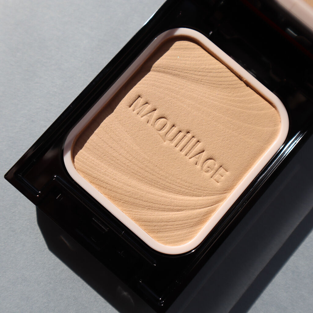 ふんわりとした仕上がりながら自然なツヤ感を演出するパウダーファンデ◎ 資生堂独自の「ムースプレス製法」により、美容液水とパウダーをムース状にして固めた軽やかなテクスチャーが特徴です。 肌に溶け込むようななめらかなフィット感で、毛穴や色ムラをふんわりとカバーしてくれる感じ。